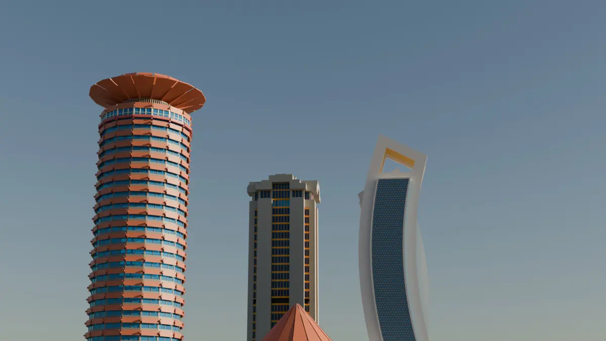 This 3D model set features three iconic landmarks in Nairobi, Kenya: