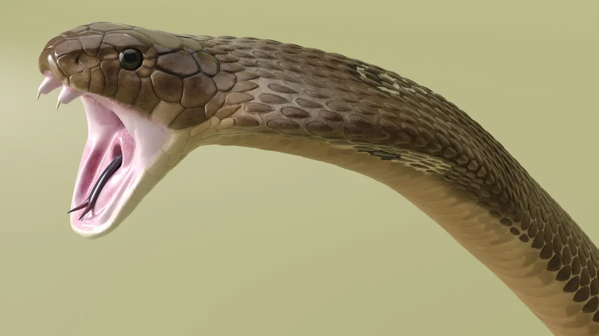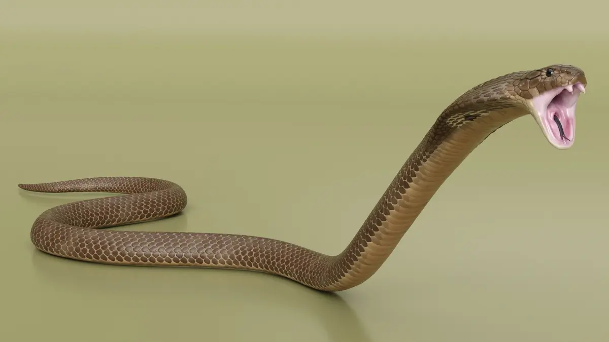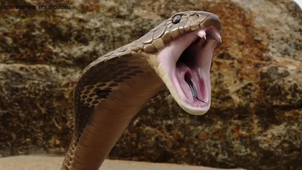 Naja Cobra Snake Attack Pose is a three-dimensional model of Naja Cobra Snake (Naja naja), that is a venomous snake species known for its iconic hood display and potent neurotoxic venom.