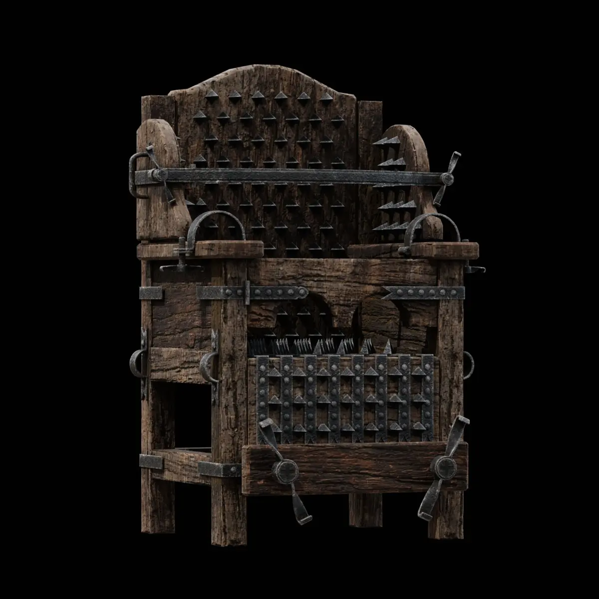 This model represents a brutal medieval torture chair covered in iron spikes – historically used to extract confessions or intimidate prisoners. The construction is solid, photorealistic, and fully compatible with modern game engines and rendering pipelines. The asset was designed specifically with Nanite in mind - Unreal Engine 5’s virtualized geometry system capable of handling extreme poly counts with ease. Despite this, the mesh is carefully optimized to avoid unnecessary geometry where not needed.