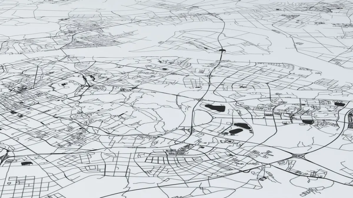 - the model is positioned on a flat surface (road network is on the “floor” - no elevation data included)