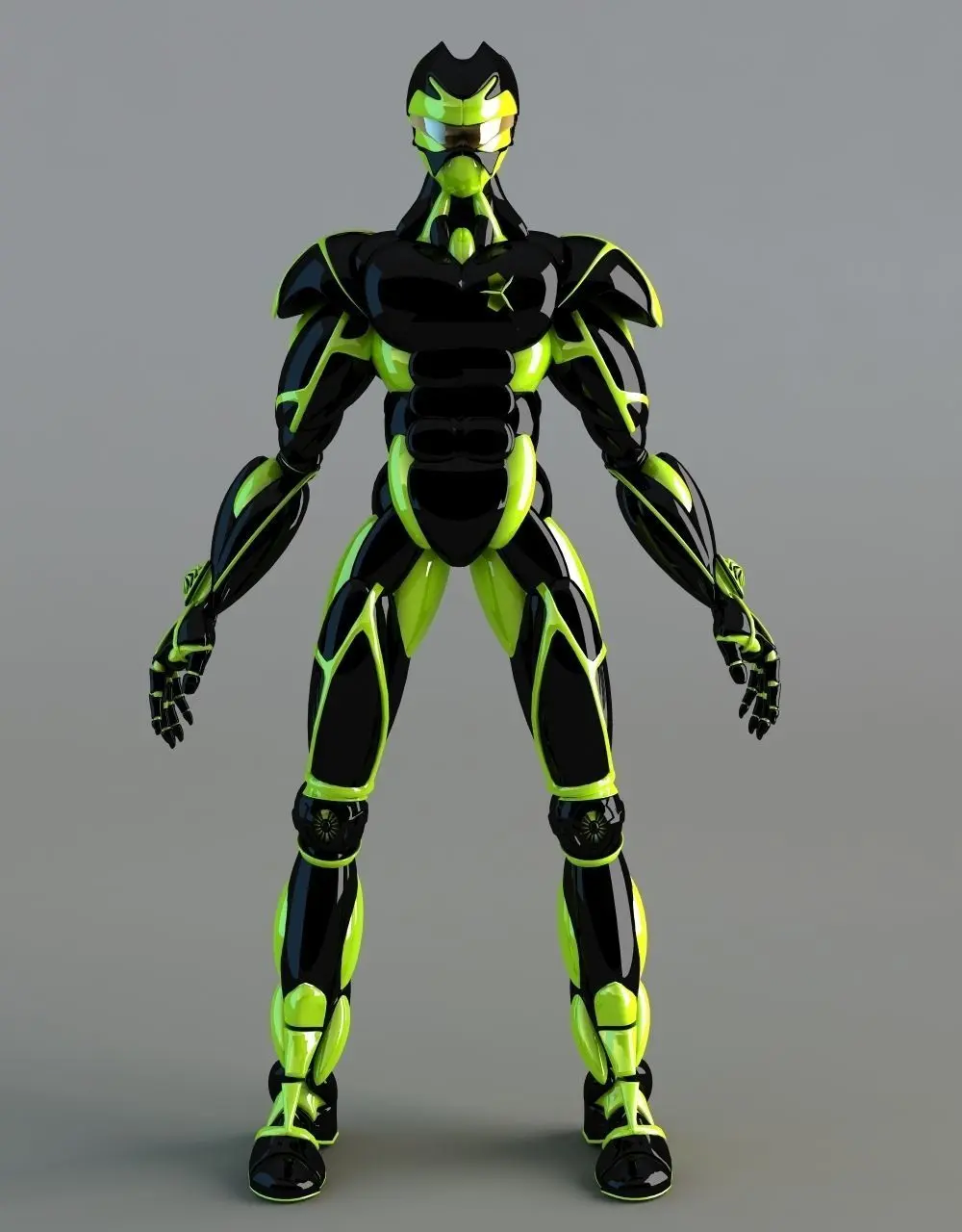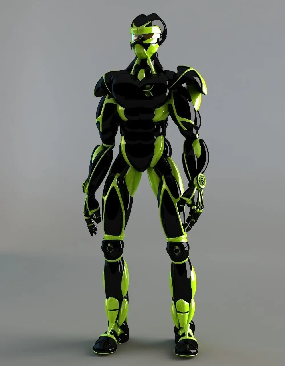 Robot sport in green and black colors, sports style design insect mantis or grasshopper.model is completely ready for animation, 3d max BIPED,Vray material+fbx+obj