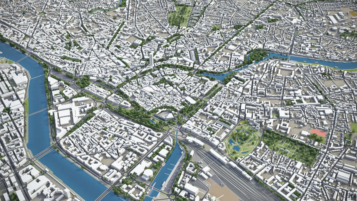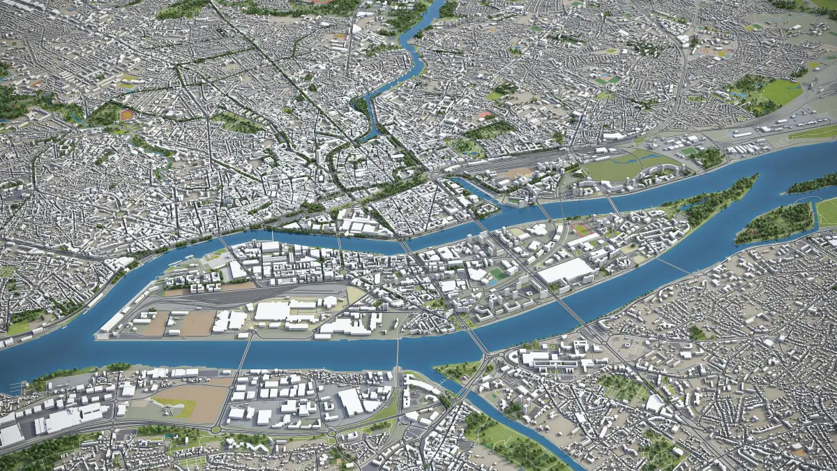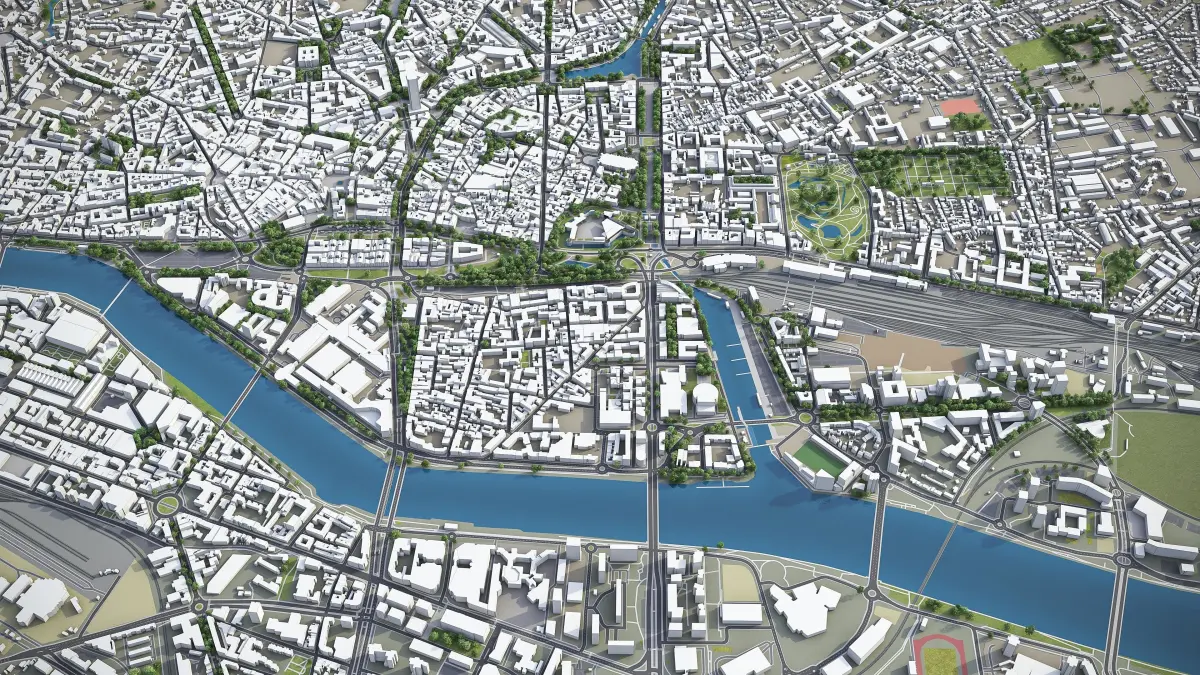 - Full city extents up to 100 x 100 km — or crop to an area of interest for better format compability and scene performance