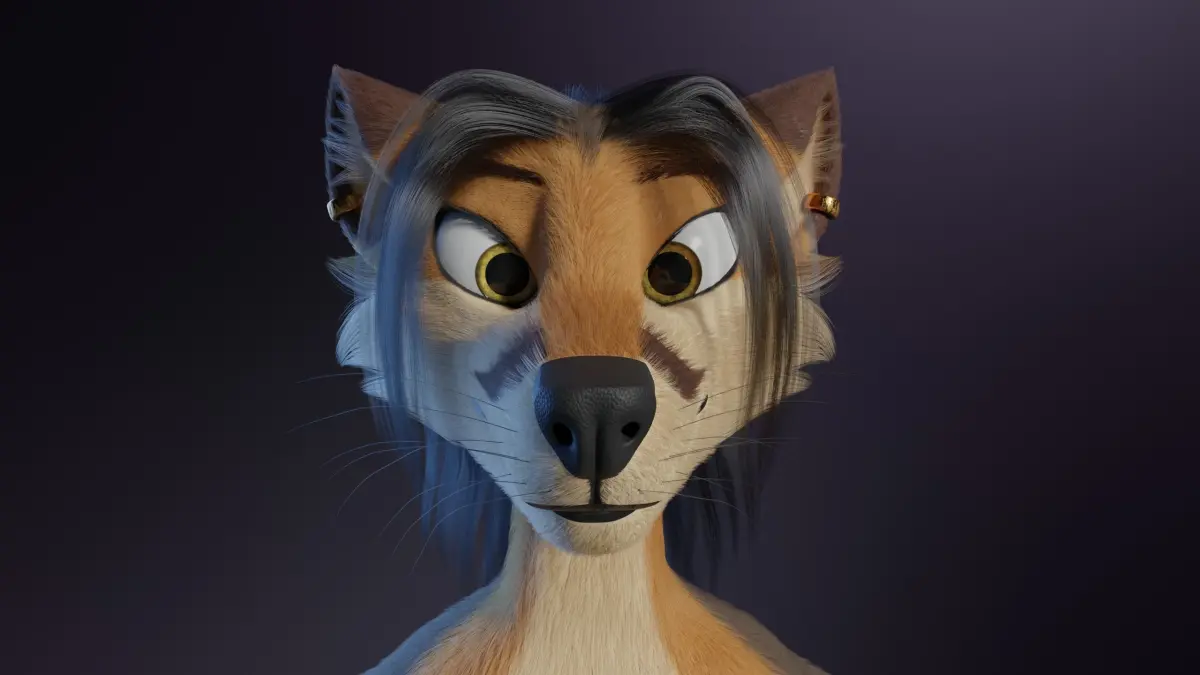 3D model of an anthro Fox made in Blender (.Blend) that I named Naomi. Rig , Hair and Fur only in blender, other formats only model mesh