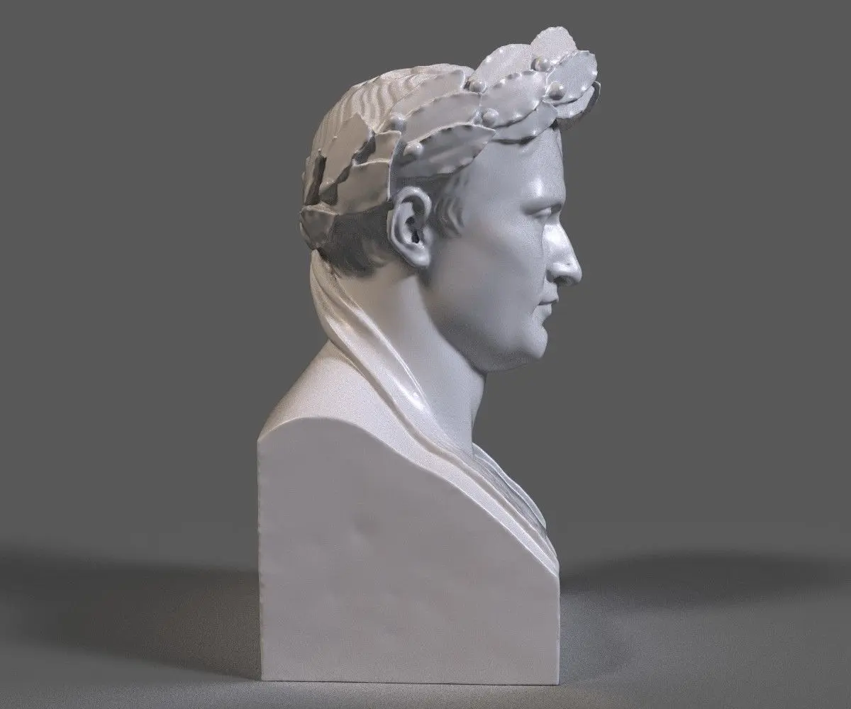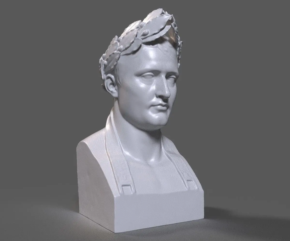 3d model of Napoleon Bonaparte sculptural bust. The mesh is watertight and ready to be printed. It's in centimeters and the height is about 34 cm. The dimensions of the base is 18 cm x 18 cm. The size can be easily changed in any 3d printing application.