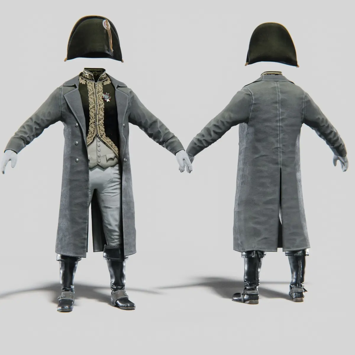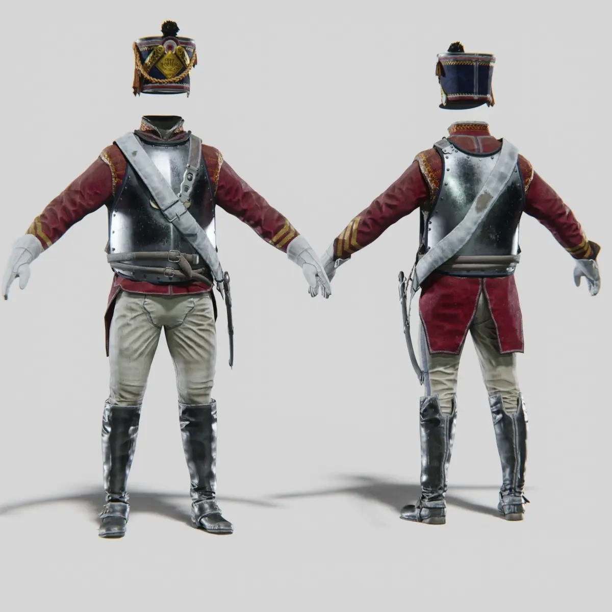 3D French napoleonic uniform from the french empire Grande armée modeled in high precision._ this is a mix between several references i found. this model has been accurately recreated in 3d High poly to keep every details.