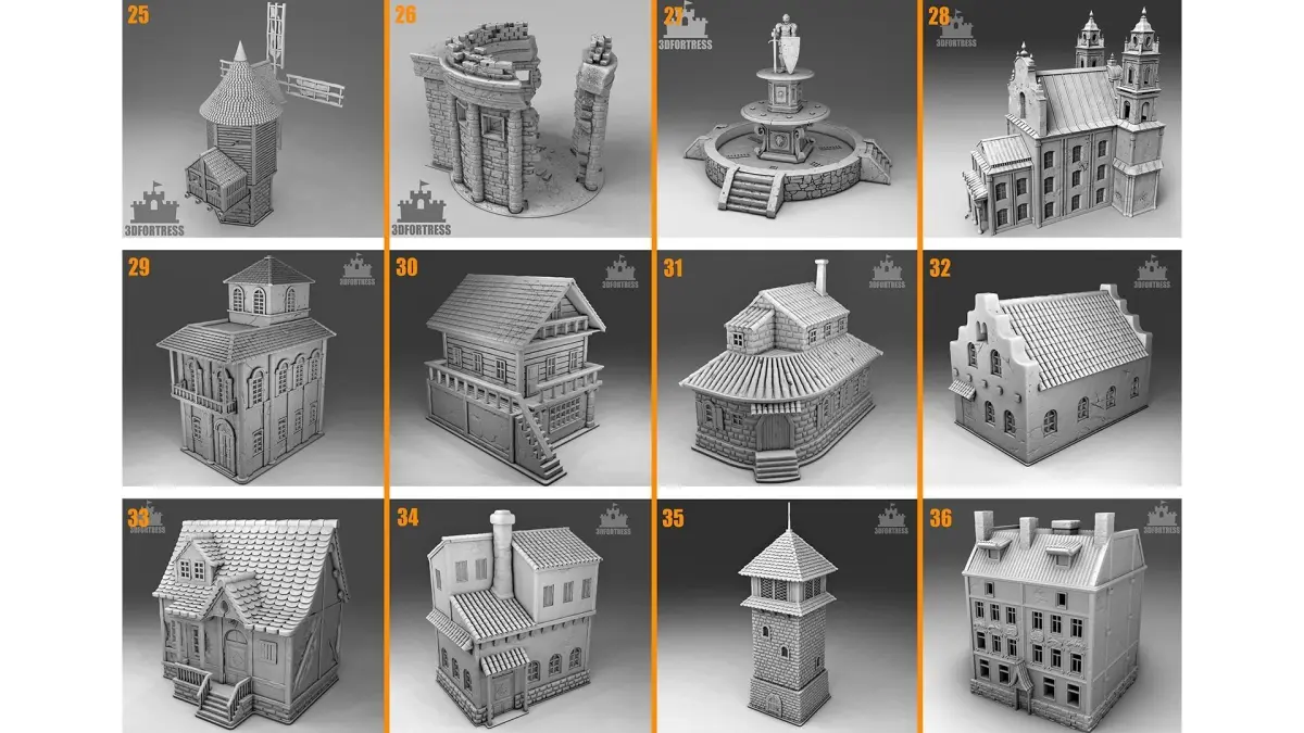 The collection includes 36 models of architecture, 20 models of characters and 7 models of decor