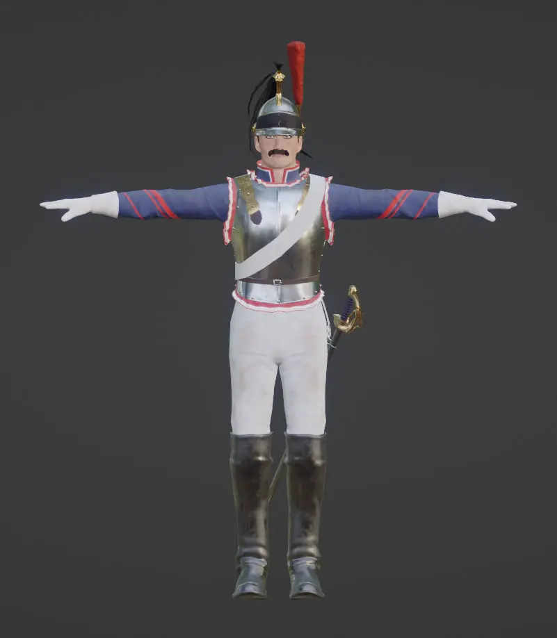 T-Pose of a Napoleonic Cuirrassier, no rigIt can be rigged.