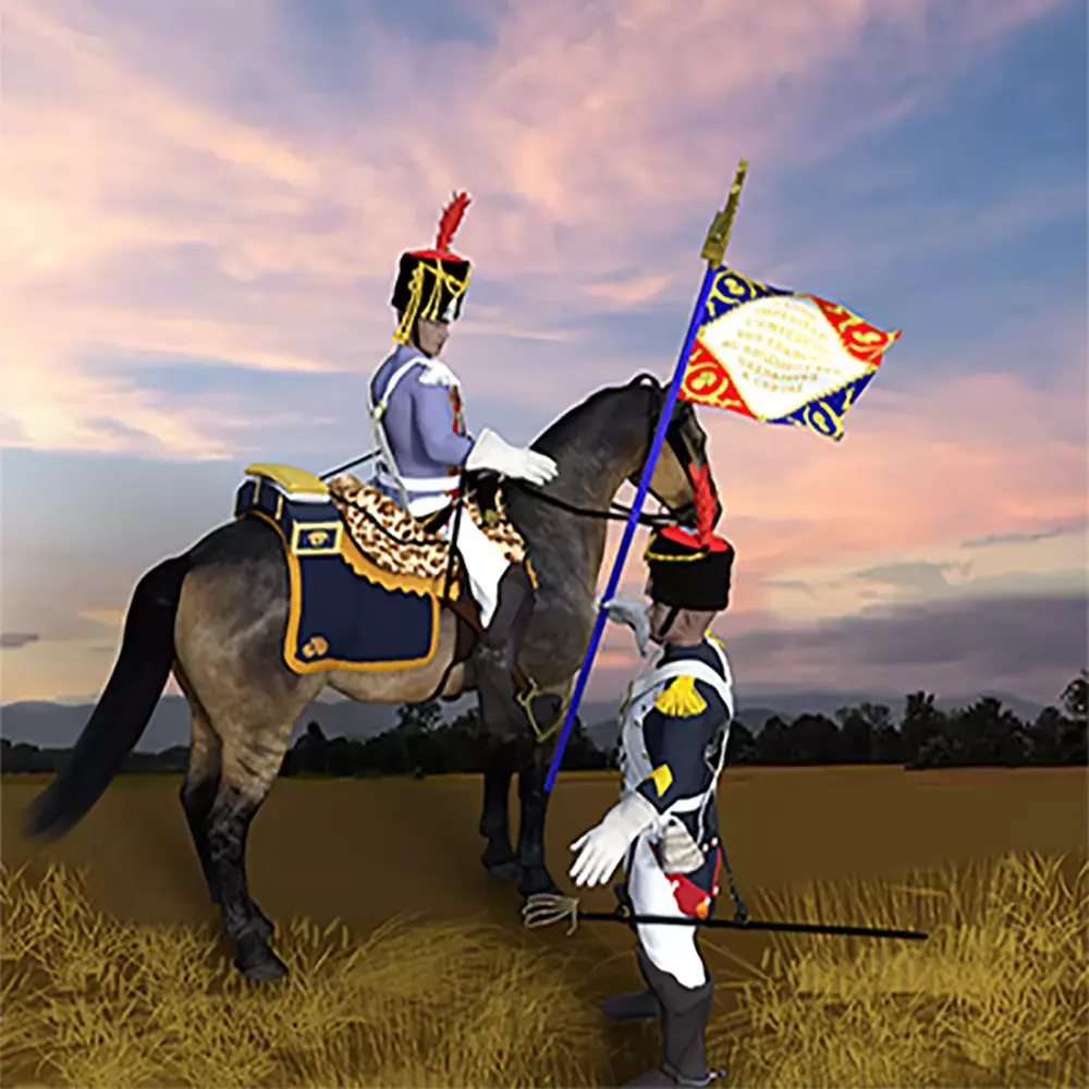Historic Uniforms of Napoleons Grenadier Guard cavalry, 14 different ranks, including 2 specials, color guard and bugler for the Genesis 8 Male Model and 3 diferent Horse Tack Outfits for Daz Horse 2Note: to preserve rigidity in key places the uniforms are in wearable formats, simply place your model in your work space, and with teh model selected choose your wearable from the menu once it populates you can no pose your figure(s)...Happy rendering