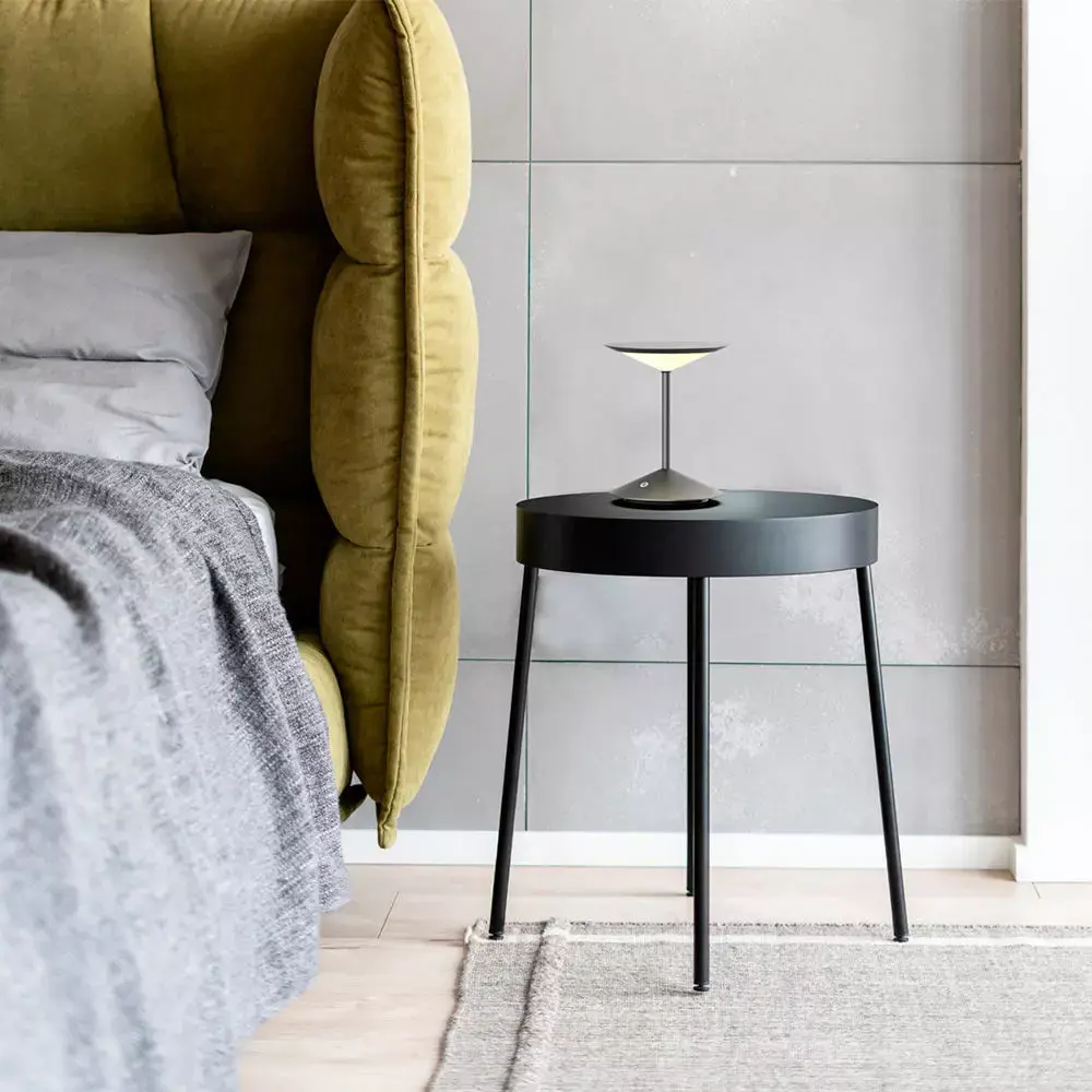 This listing offers a high-quality 3D model of the Narciso Table Lamp, perfect for contemporary interior visualization, product presentations, and creative projects. Distinct for its minimal geometric form, the lamp features a metal conical base, slender central stem, and broad disk-shaped diffuser, producing soft, ambient LED illumination.