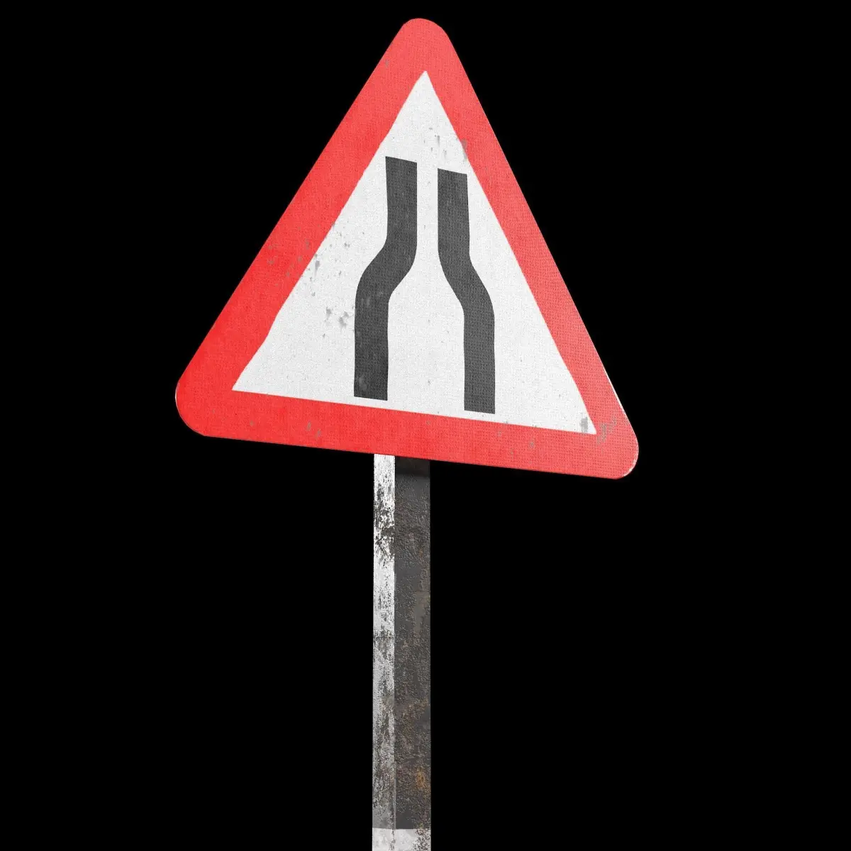 Narrow road ahead Roadsign ready for VR,AR,games and other render engines.This 3d model is equipped with 4k resolution PBR texture maps like-diffuse,roughness,normal,AO,height and metallic.This model is converted in formats like-abc,dae,fbx,ply,obj,3ds and stl.