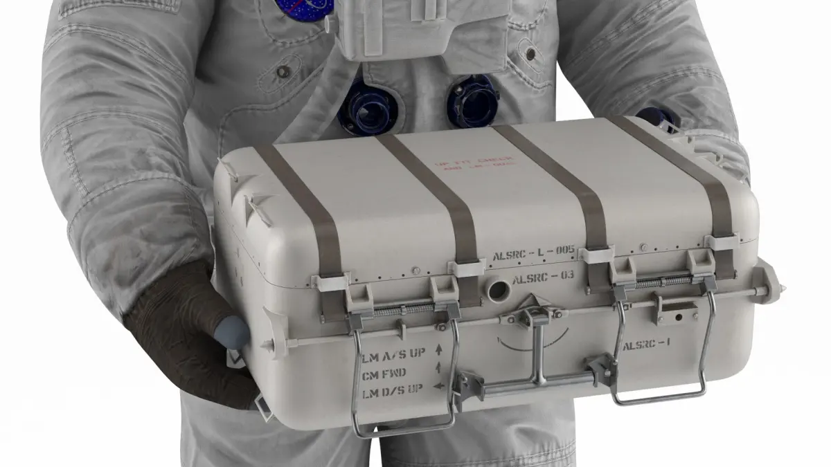 NASA Lunar Sample Return Container in Hand Astronaut is a 3d model of an astronaut suit designed for lunar exploration missions, showcasing advanced space technology and protective features.