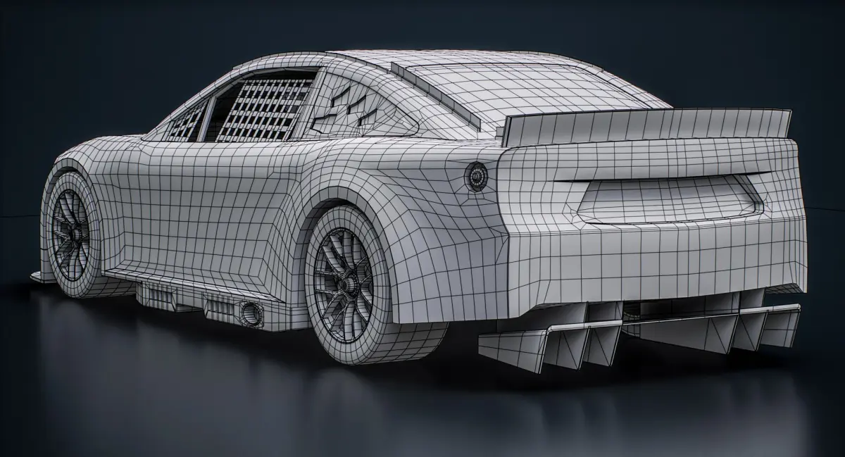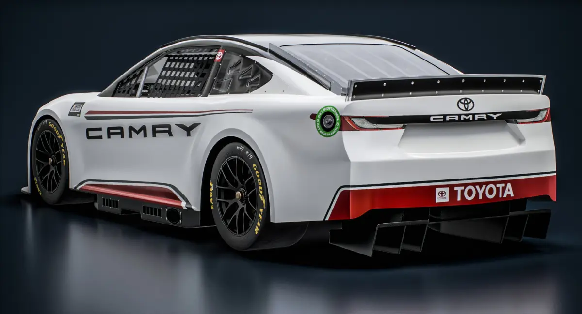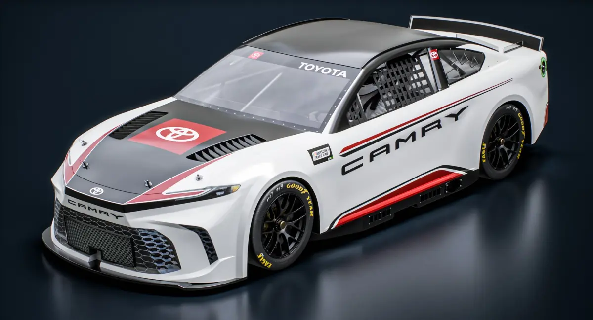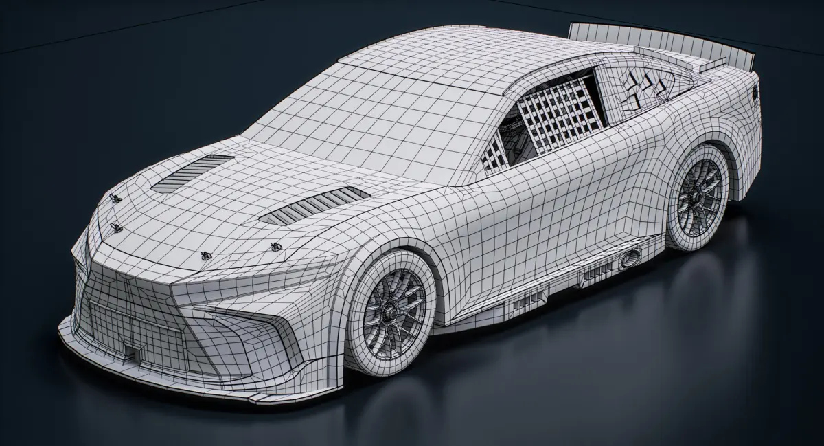 Low-poly game ready 3D model of NASCAR Toyota Camry XSE 2025 Race Car Mockup with PBR materials (Specular and Metallic workflows). Suitable for computer/mobile games, broadcast, advertising, visualization.