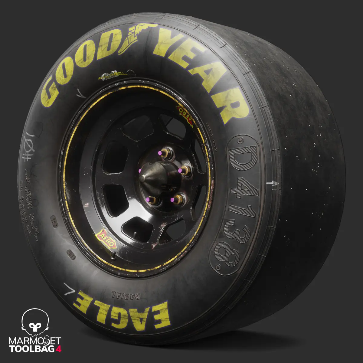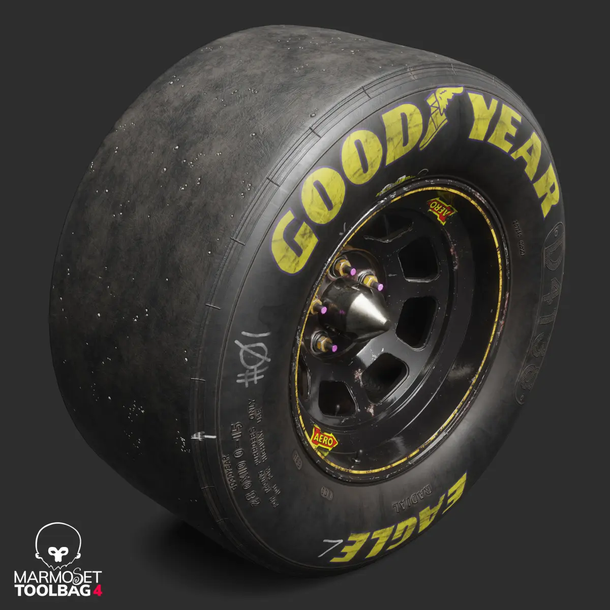 PBR Low Poly 3d model of NASCAR wheel from 00`s.There are 2 meshes and 3 texture sets for tires and rim separately. Includes different sets for WORN and FINE tiresThis model uses the metalness PBR workflow and includes 4k PNG files for the following: