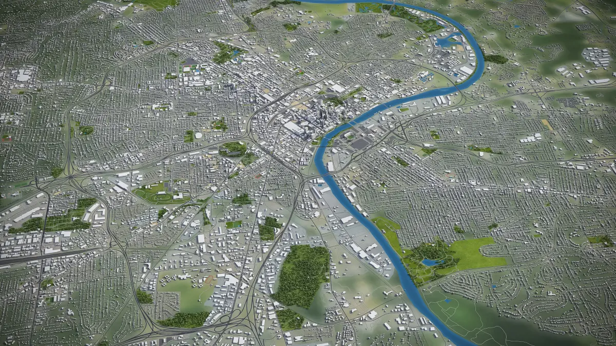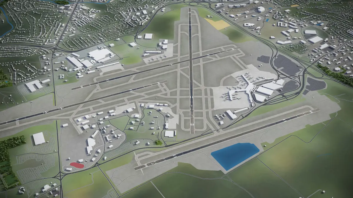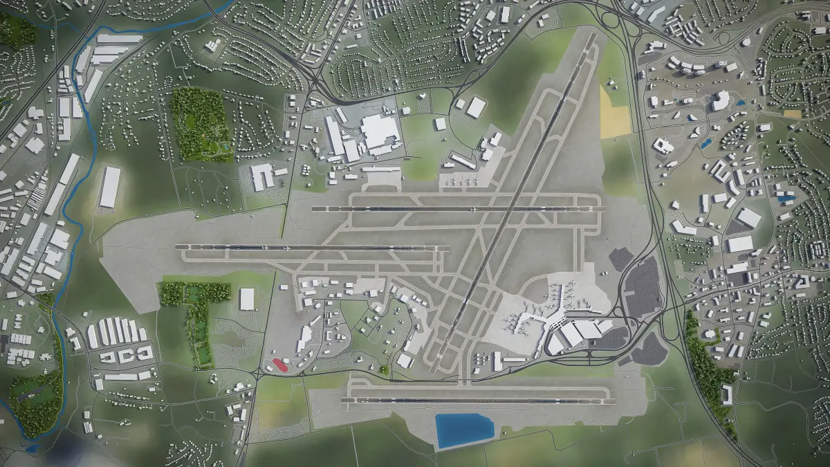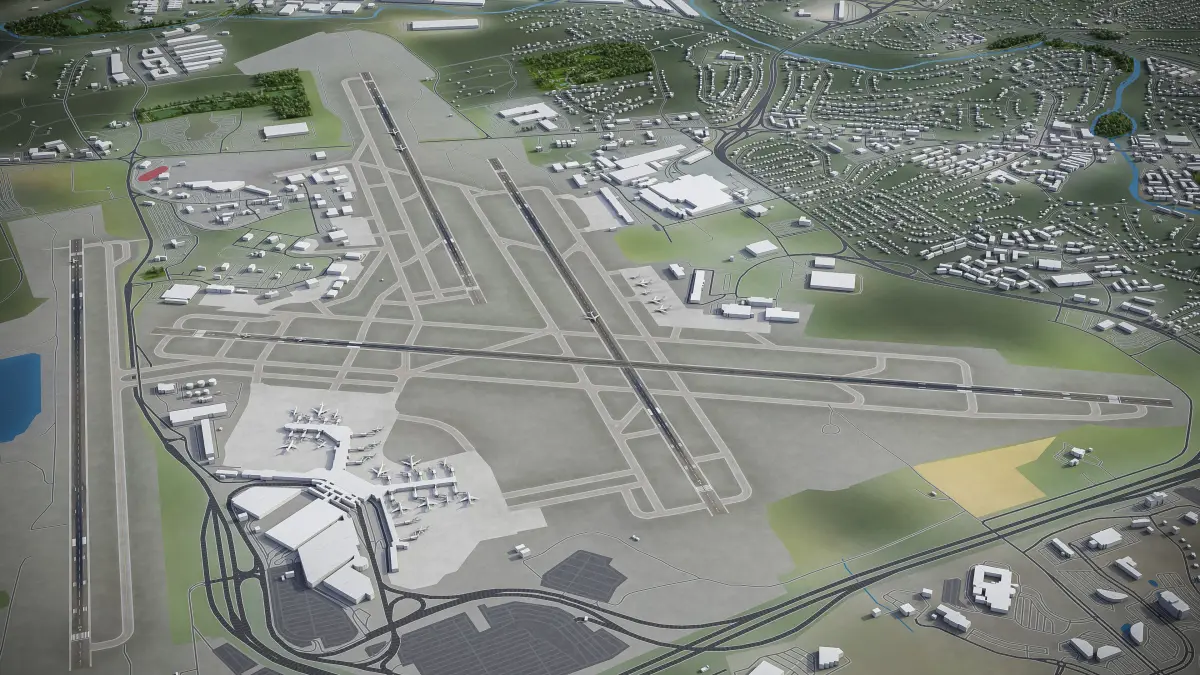 This is exact and accurate to scale 3D model of Nashville International Airport - BNA and its surrounding area based on GIS data (December 2021)