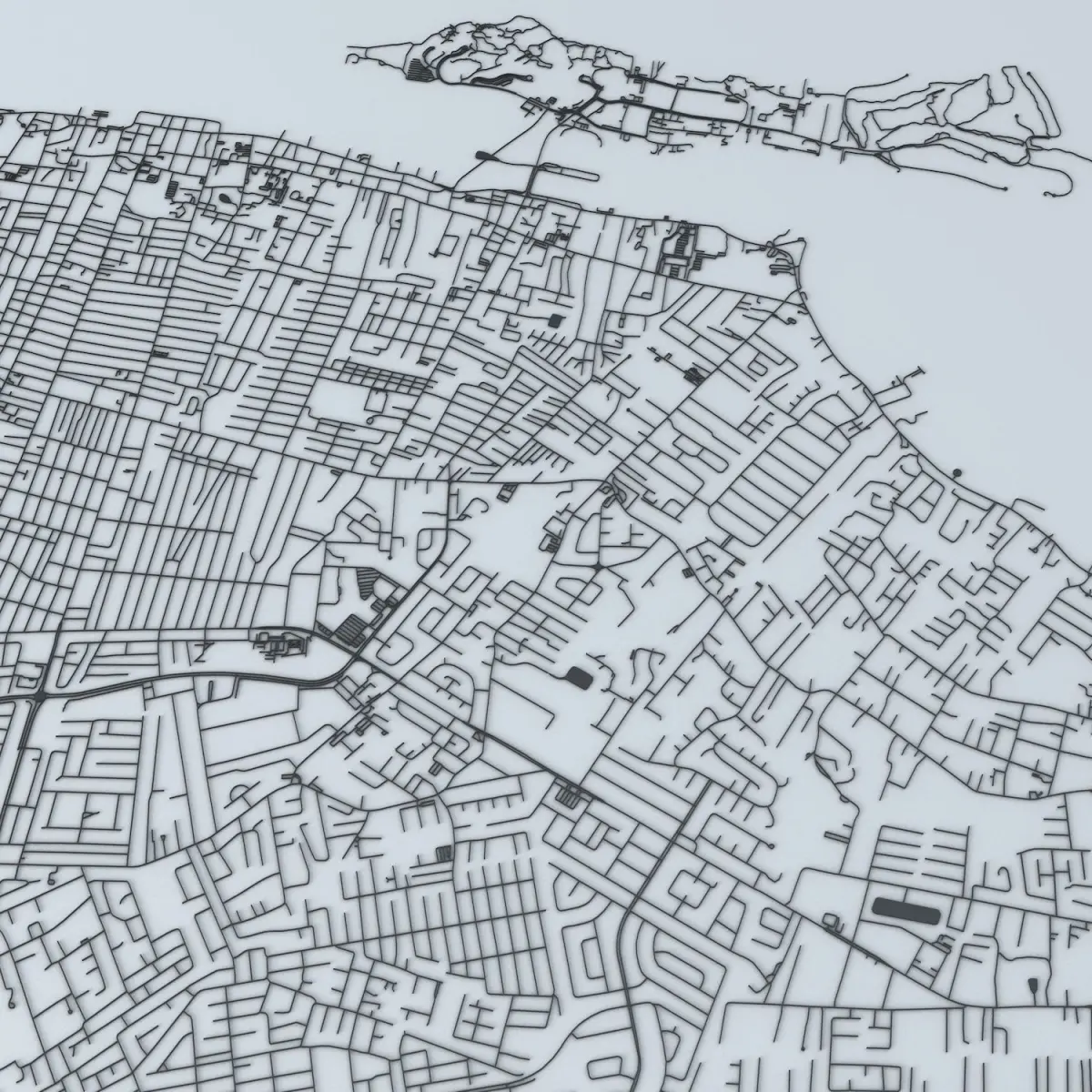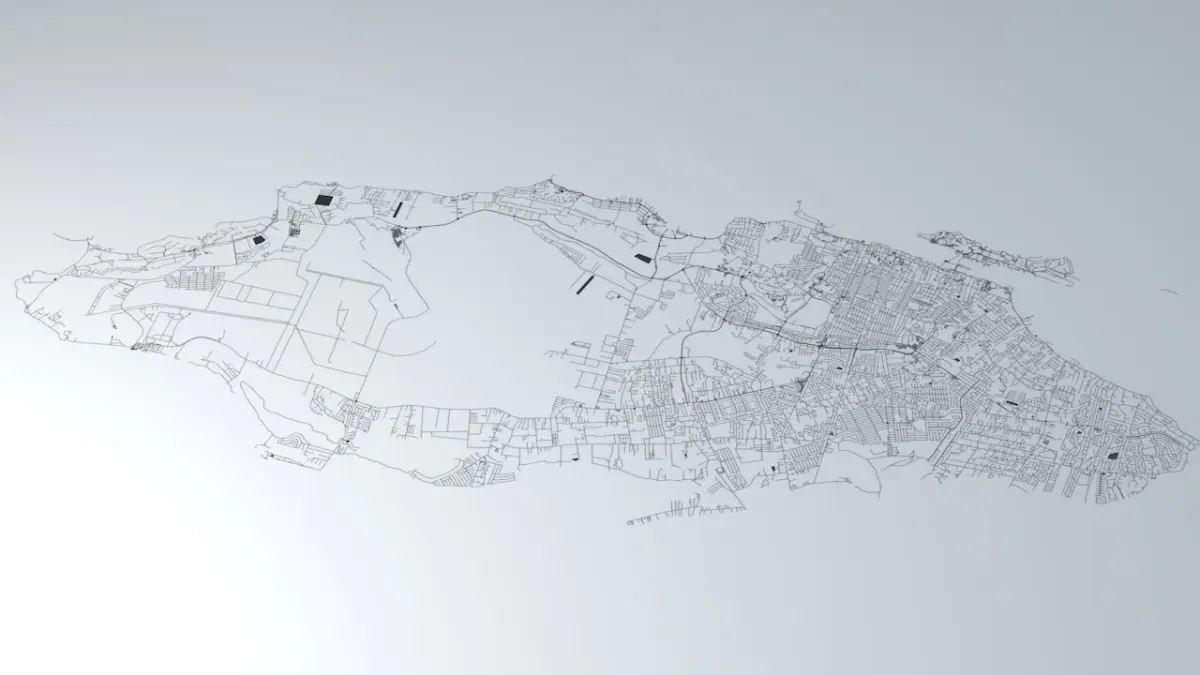 - this model is based on real data therefore this is a realistic road network and streets setup of Nassau, The Bahamas