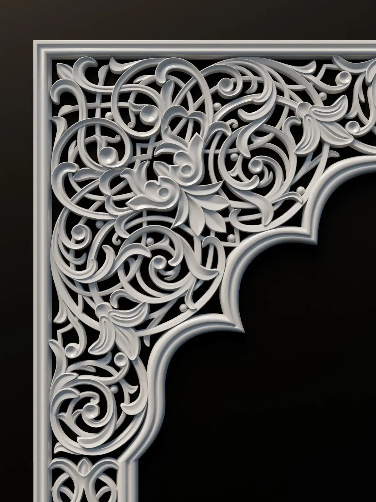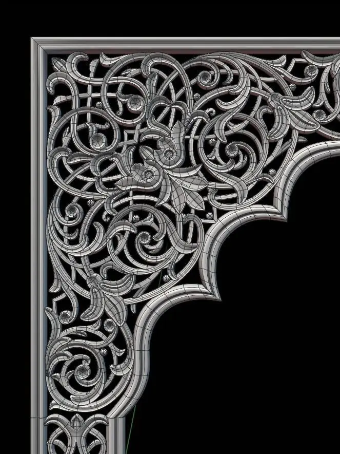 full editable composite low-poly mirrored 3d model of carved national ornament lattice, cnc-ready