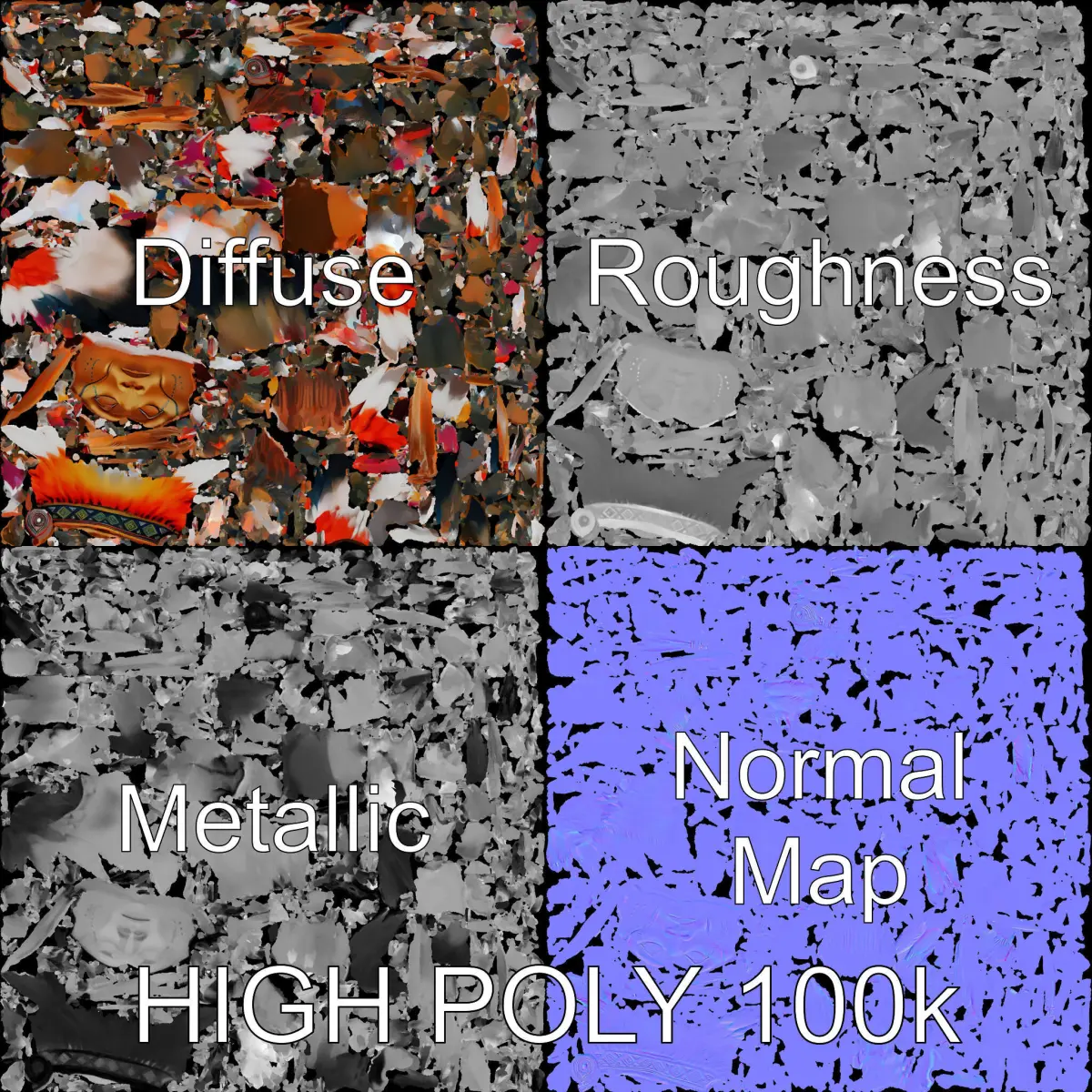 This 3D model pack features a detailed Native American headdress, perfect for historical reenactments, cultural education, or as a decorative element in virtual productions. Each headdress is crafted in three levels of detail: low-poly for mobile applications, middle-poly for environment settings, and high-poly for high-quality production rendering. It includes PBR, Diffuse, NormalMap, and reflection/roughness/metallic textures, ensuring compatibility with all modern rendering engines. Each model is accurately unwrapped with no overlapping UVs and features 4096*4096 resolution textures.