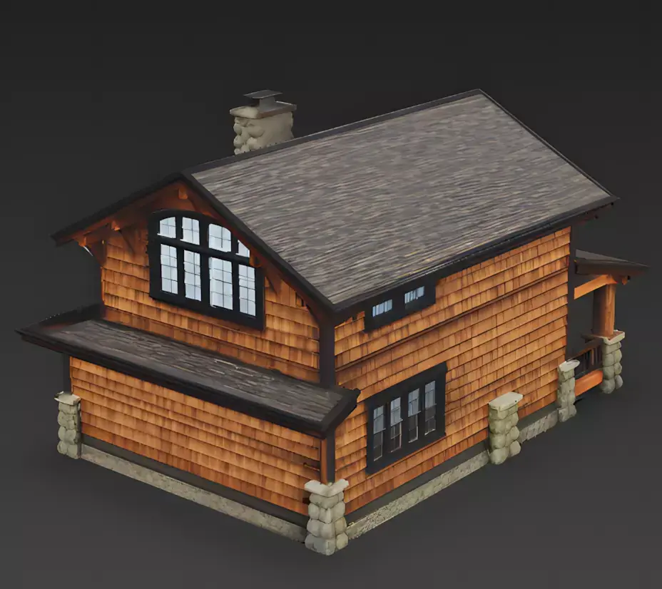 Files Included: FBX, GLB, OBJ, STL, ZIP (Textures). Quick Tip: The Cedar Shingles rely on a good Normal Map to differentiate the individual wooden tiles. The Stone Chimney is ideal for Displacement Mapping to make the round rocks silhouette effectively against the wall.