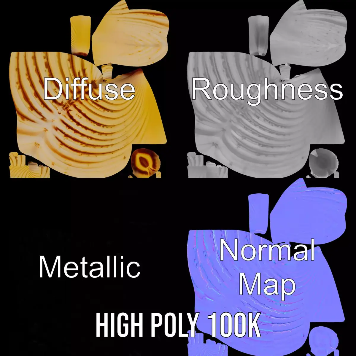 This Natural Seashell Textured model pack captures the detailed beauty of a seashell with high-quality PBR textures. The model is perfect for beach-themed scenes, educational purposes, or oceanic decor visualizations. Each model has 3 levels of detail: low-poly (1,000 triangles for mobile), middle-poly (10,000 triangles for environment), and high-poly (100,000 triangles), allowing for use in production rendering with software like 3ds Max, Maya, and Blender, and in game engines such as Unity and Unreal. The textures include Diffuse, NormalMap, and reflection/roughness/metallic layers, all at 4096x4096 in size. The detailed and accurately unwrapped UVs ensure seamless rendering with no overlapping. If you enjoy this model, please like and leave a comment. Thank you for your support!