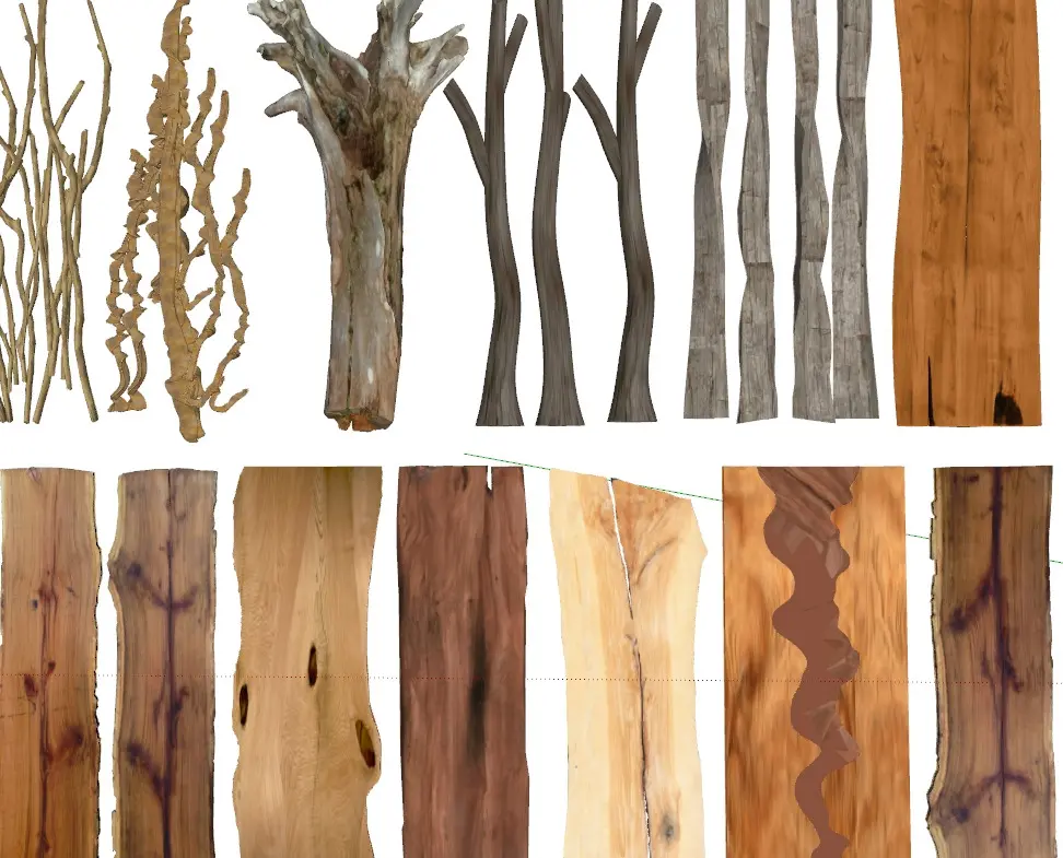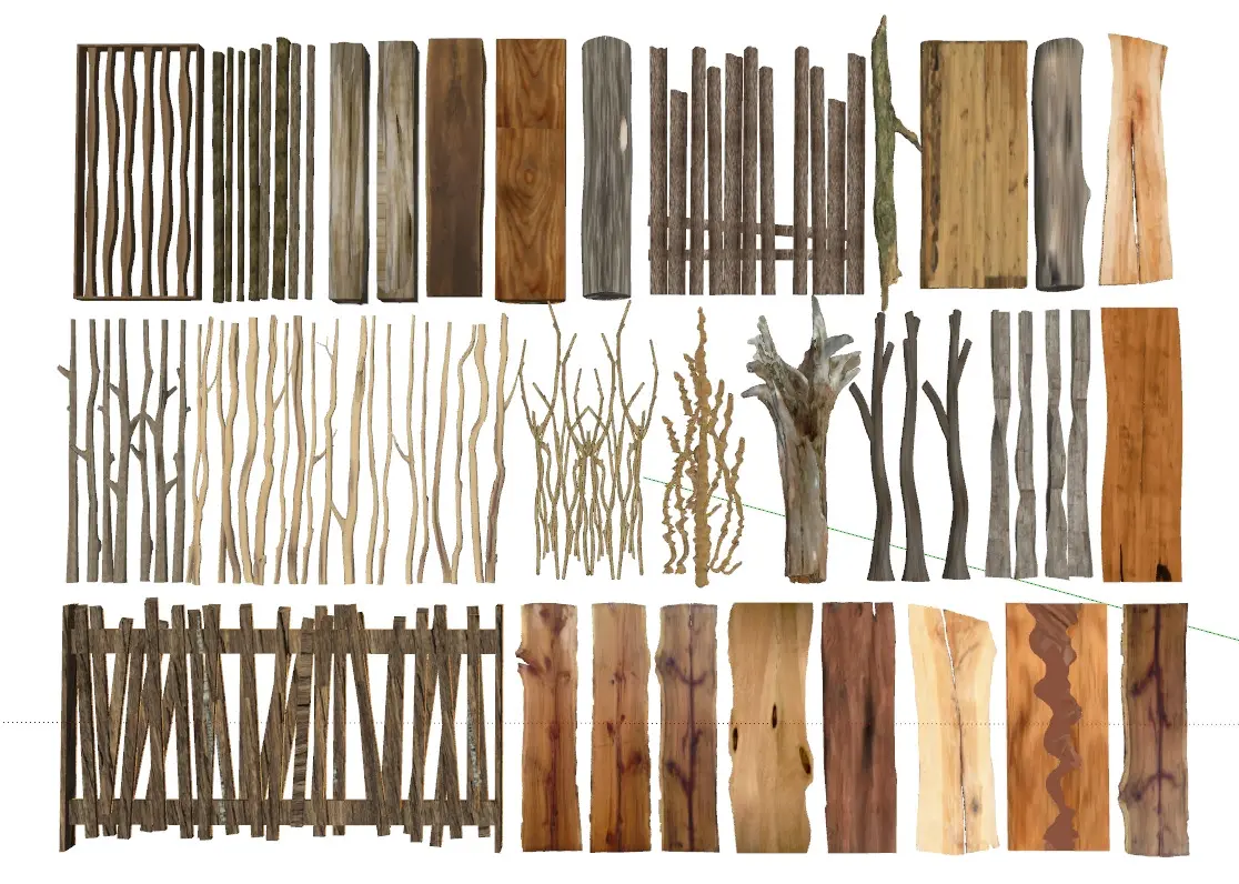 Model Introduction:Gathers various natural wooden components, including logs, wooden strips, dried branches, wooden fences, etc., retaining the natural texture and form of wood. Suitable for rural, natural, and retro - style scene construction, providing original ecological wooden element reserves for landscape design, decorative art, film and television props, etc.Applicable Scenarios:Natural - style construction in landscape design, material for decorative art creation, rural prop arrangement in film and television scenes, pastoral - style space decoration matching, material library filling for handmade DIY