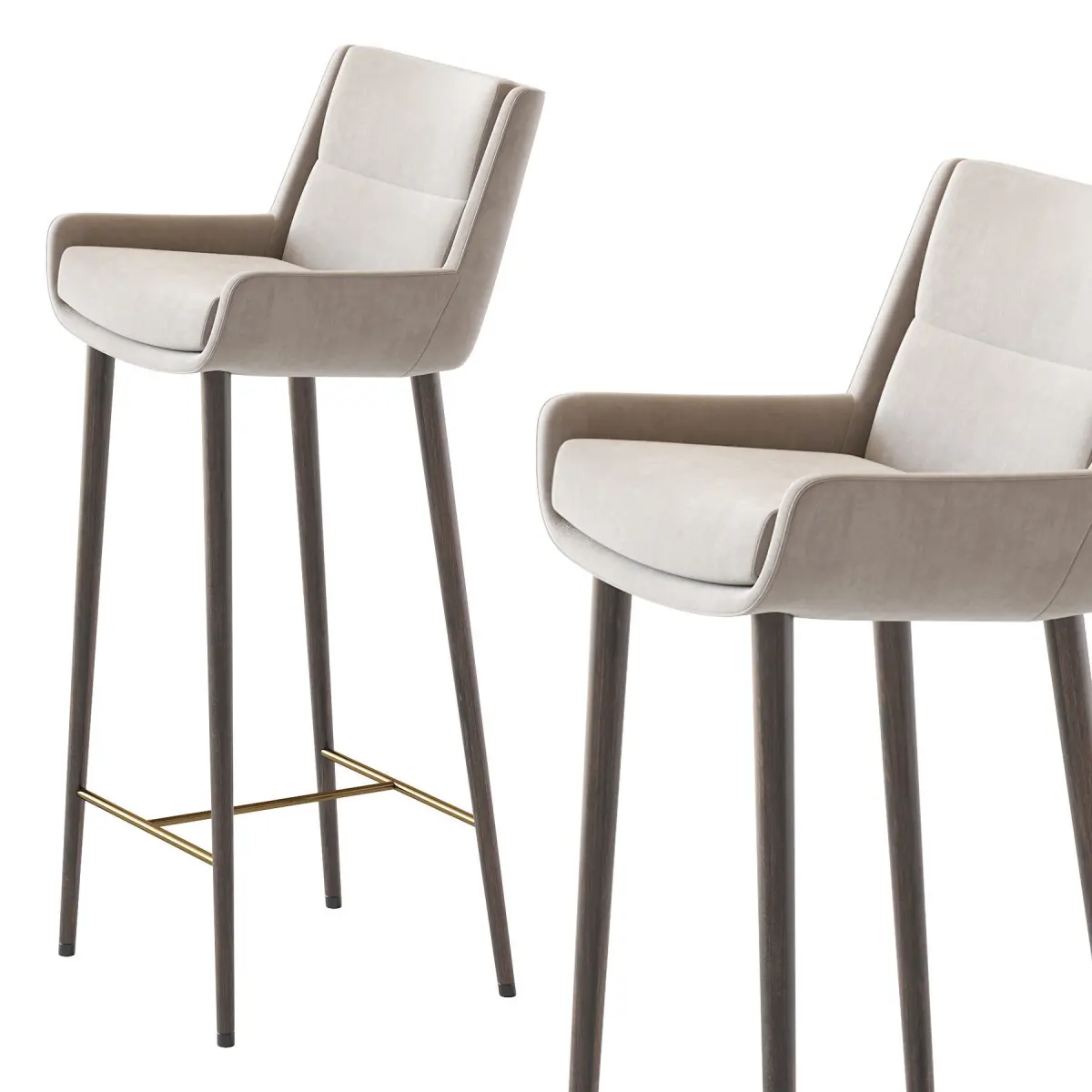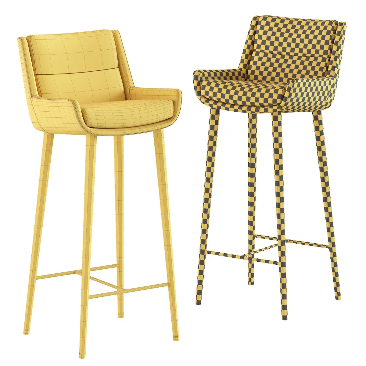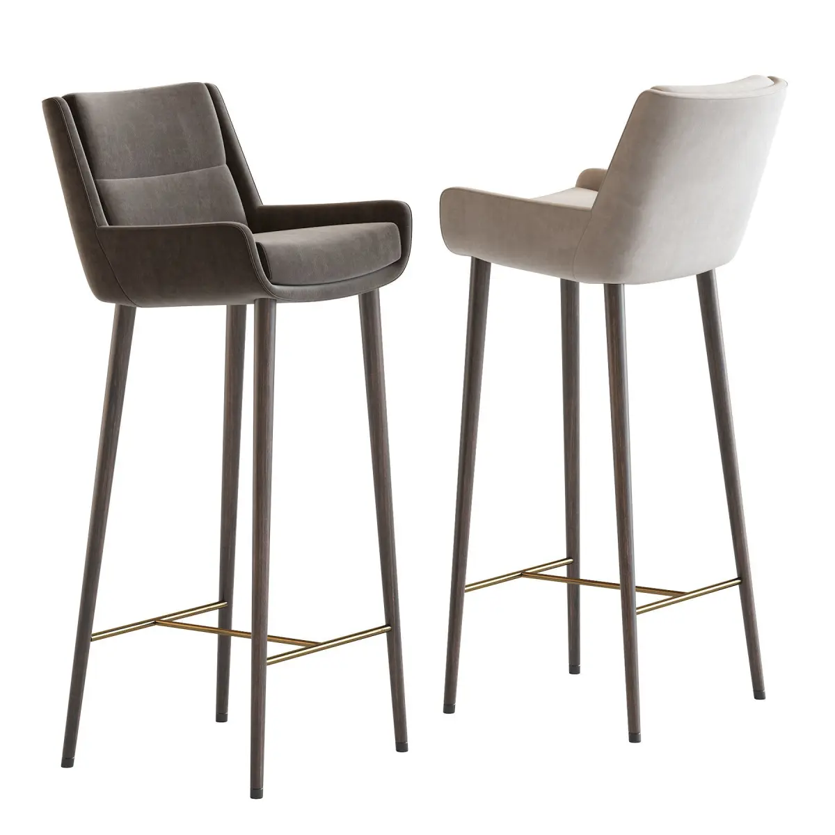 There are many different types, construction materials and models. Bar stools are often made of wood or metal. There are bar stools with and without armrests, backs, and padding or upholstery on the seat surface. Bar stools can range from basic wooden designs to more complex ones with adjustable height. Extra tall and extra short are common features, as well as indoor bar stools and outdoor bar stools. Some bar stools have backs, while most do not. In commercial settings, swivel and floor mounted bar stools are common. Floor mounting renders the stool immovable, so it cannot be stolen or used as a weapon in a bar fight. Floor-mounted stools generally are mounted on a column, but stools with legs can also be secured to the floor using metal brackets.