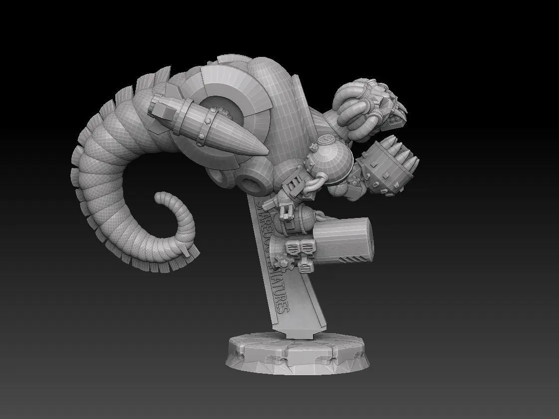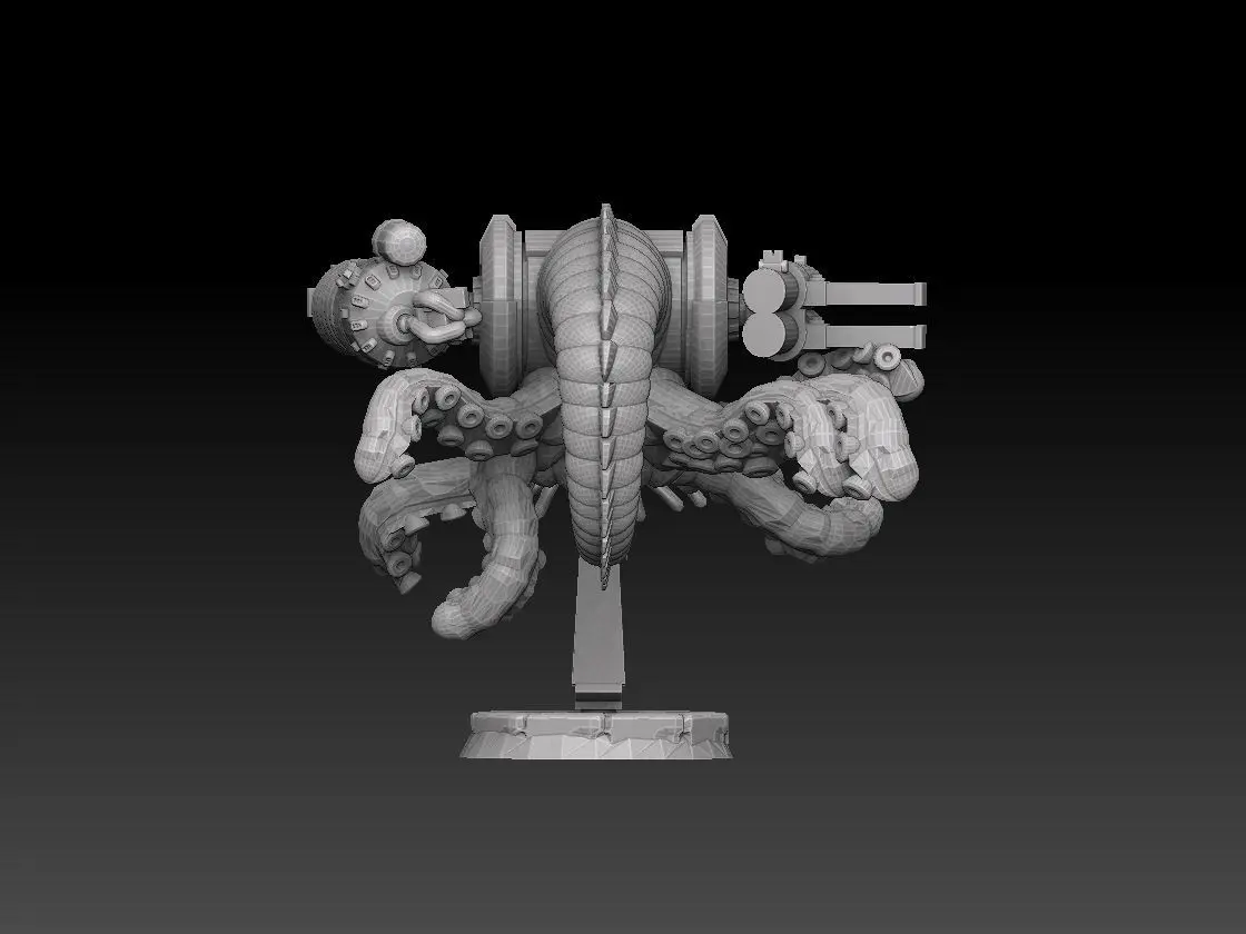 An implacable biomechanical horror capable of both plumbing the depths of the ocean and floating through the air using antigrav suspenders. This model kit contains enough parts to print a number of different nautiloid horrors, using a wide variety of weaponry (6 different arm weapons, 7 weapons mounted on the carapace and 3 weapons that can be mounted instead of a head...).