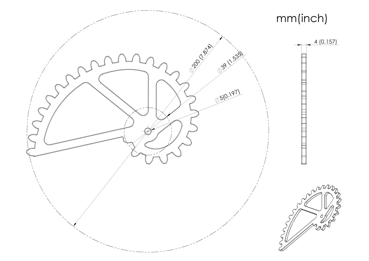 The model is correctly drawn and with involute teeth. It does not need supports when printing. To print it, we need to print the failed plot once and the Nautilus gear file twice.