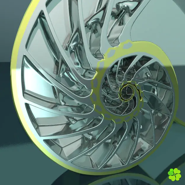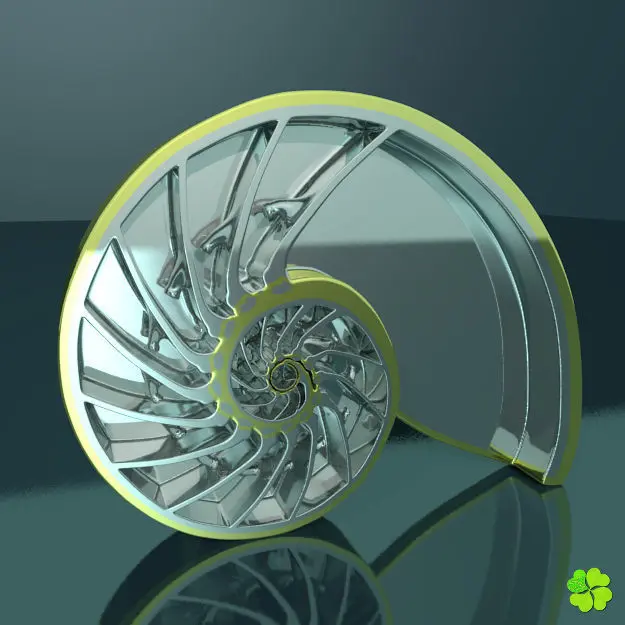 - Sculpture wiht metallic finish, inspired by the longitudinal section of a nautilus shell.