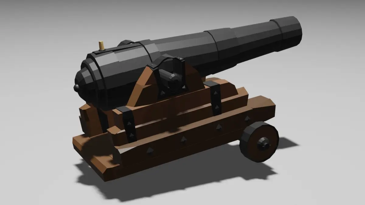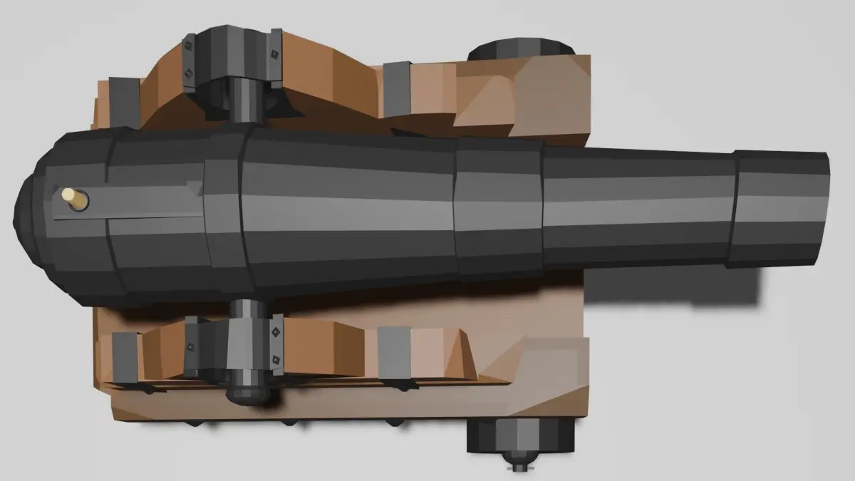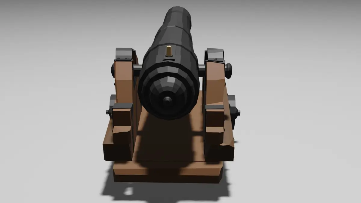 Naval cannon Low poly. 3D model made on Blender 2.92.
