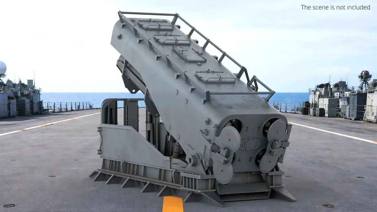 Naval Mk143 Launcher System Gray Rigged is a 3d model of a military-grade missile launching platform, designed for strategic deployment and precision targeting.