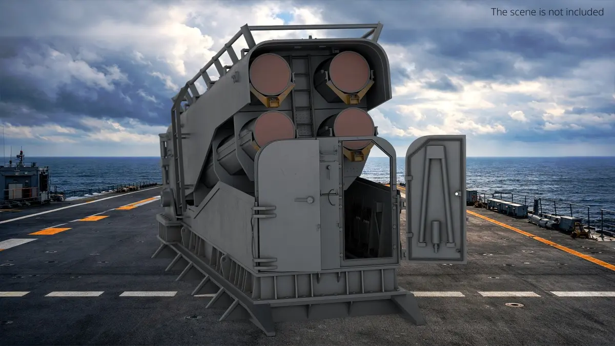Naval Mk143 Launcher System Gray Rigged is a high quality, photo real 3d model that will enhance detail and realism to any of your rendering projects. The model has a fully textured, detailed design that allows for close-up renders, and was originally modeled in 3ds Max 2020 and rendered with V-Ray. Renders have no postprocessing!