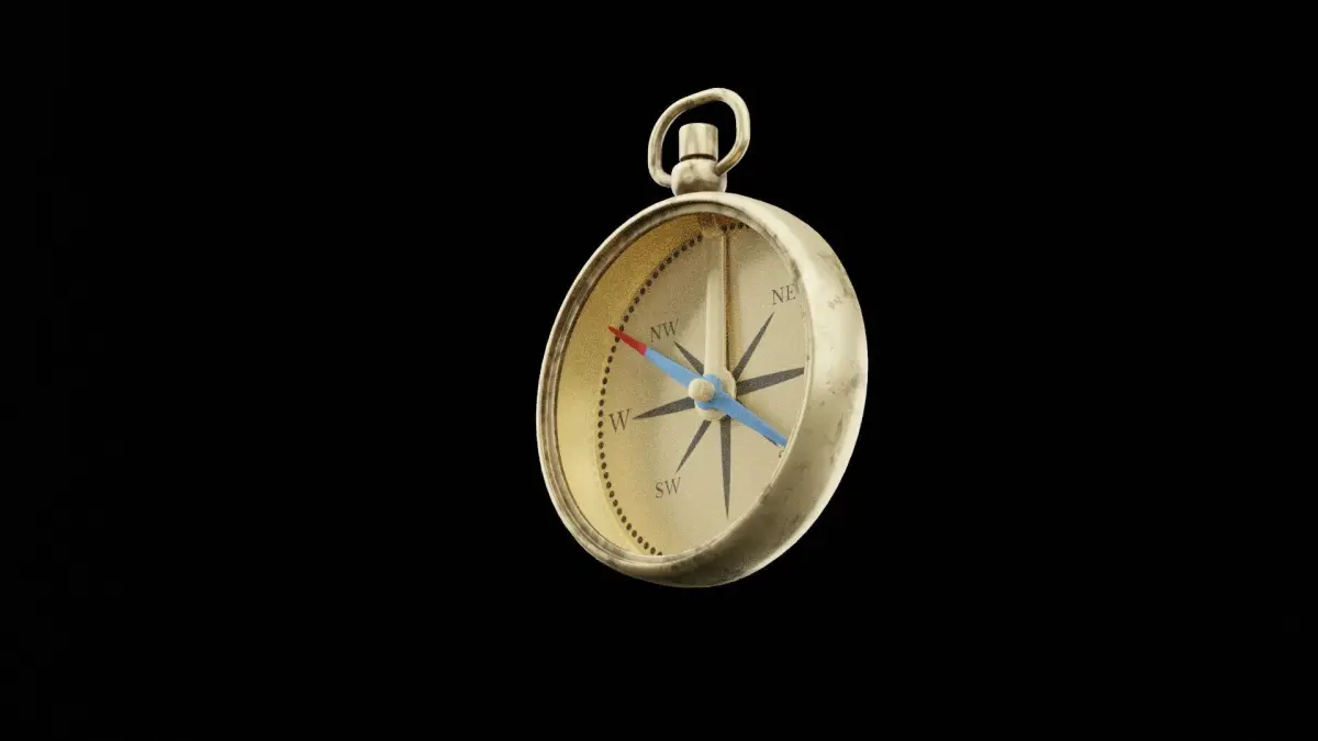Navigational Compass 3D ModelDescription: A compass is a navigational instrument used to determine direction relative to the Earth's magnetic poles. Typically featuring a magnetic needle that points north, it has been an essential tool for navigation, both at sea and on land. The compass is housed in a circular casing with a rotating dial marked with cardinal directions (North, South, East, West) and degrees. This tool is often used in outdoor activities such as hiking and orienteering and can be a symbolic object, representing exploration and adventure.