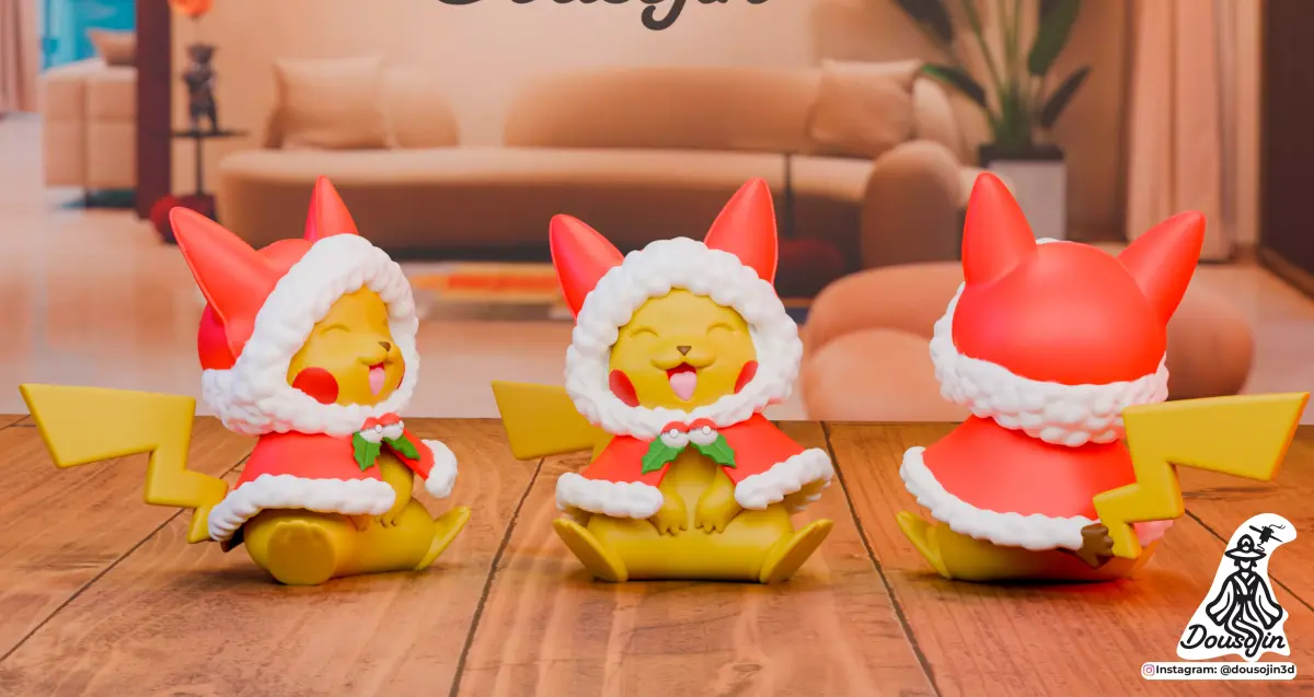 Pikachu – Espíritu NavideñoCon una capa invernal y capucha abrigada, Pikachu refleja su clásico carisma y energía, ahora en una versión cálida y festiva lista para iluminar cualquier escena navideña.