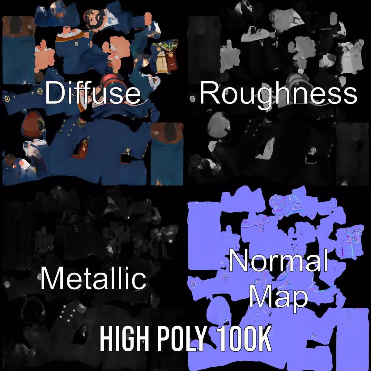 This highly detailed Navy Captain Uniform model is perfect for maritime-themed games, films, and VR experiences. It features intricate designs and historically accurate details, enhancing any scene with authenticity. Each model has 3 levels of detail: low-poly(1000 triangles for mobile), middle-poly(10 000 triangles for environment), and high-poly(100 000 triangles), which allows for the use of this model in production rendering (such as 3ds Max, Maya, Cinema4D, Blender, Vray/Corona/Cycles and all other), game engines (Unity and Unreal compatible), and interactive presentations, providing a choice of detail based on the LOD System principle. The model is designed for historic reenactments, military education, and storytelling scenes. The model's textures are PBR, Diffuse, NormalMap, and reflection/roughness/metallic, which are suitable for any modern rendering engine. All models accurately unwrapped and have no overlapping UV. All textures are 4096*4096 in size. Please like and leave a comment if you enjoy the model.