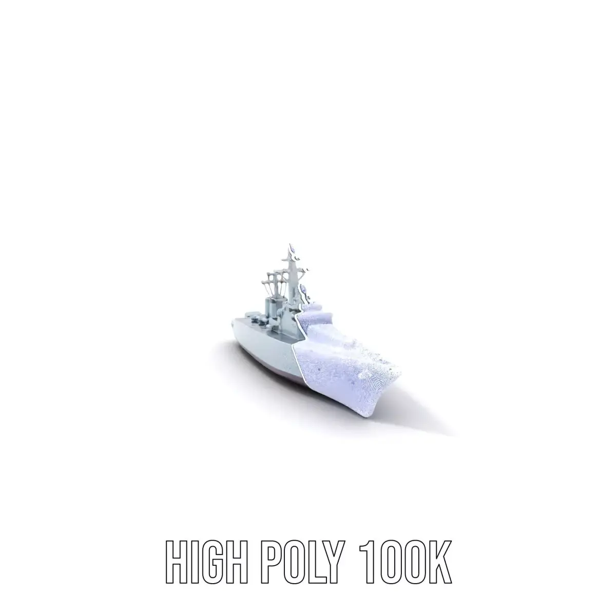 This realistic Navy Frigate Warship model is perfect for simulation, military strategy games, and cinematic productions. Each model has 3 levels of detail: low-poly (1000 triangles for mobile), middle-poly (10,000 triangles for environment), and high-poly (100,000 triangles), which allows for the use of this model in production rendering (such as 3ds Max, Maya, Cinema4D, Blender, Vray/Corona/Cycles and all other), game engines (Unity and Unreal compatible), and interactive presentations, providing a choice of detail based on the LOD System principle. Suitable for naval combat scenes and tactical visualizations. The model's textures are PBR, Diffuse, NormalMap, and reflection/roughness/metallic, which are suitable for any modern rendering engine. All models accurately unwrapped and have no overlapping UVs. All textures are 4096*4096 in size. Like and leave a comment if you enjoyed this model.