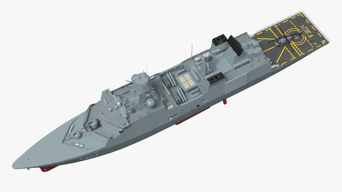 This model represents the Iver Huitfeldt-class frigate, known for its advanced stealth features, versatile combat systems, and impressive range capabilities. The frigate includes a helicopter landing platform, multi-role RADAR systems, and missile launchers, making it formidable in air, surface, and subsurface warfare.