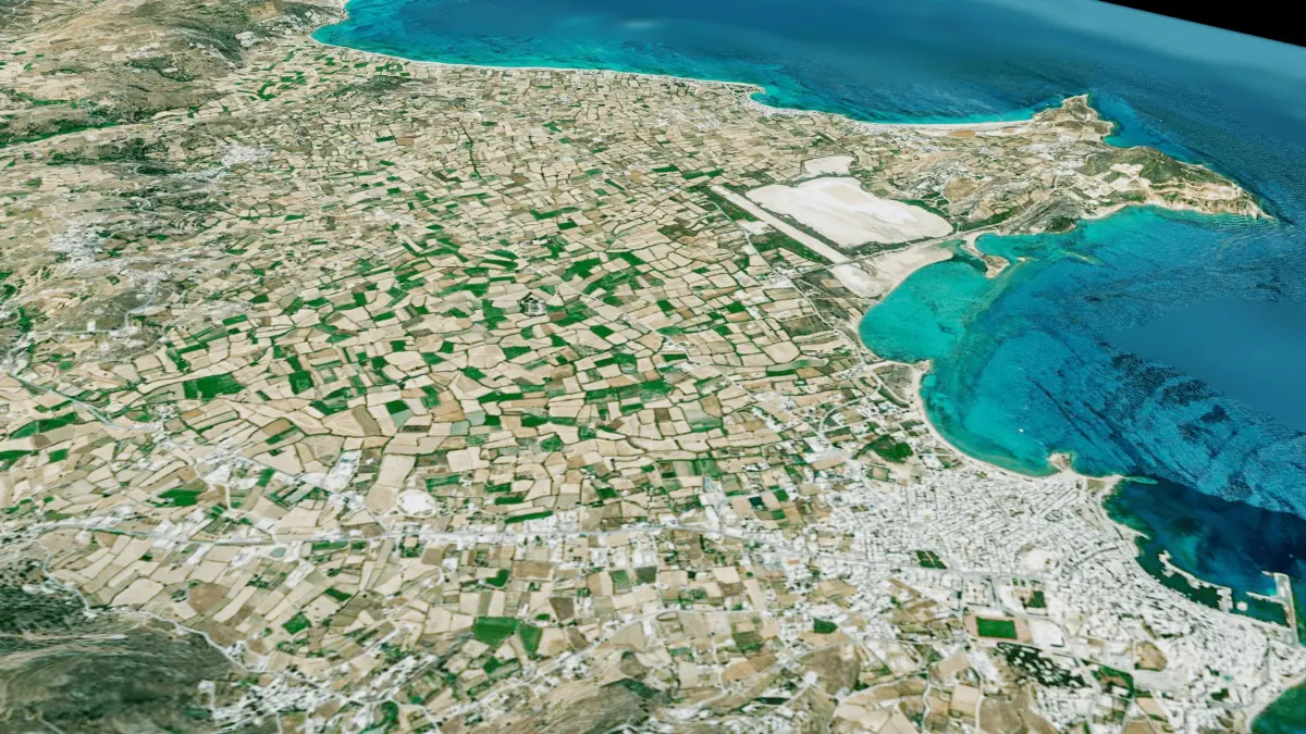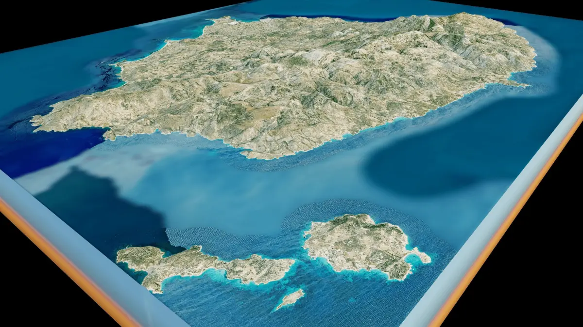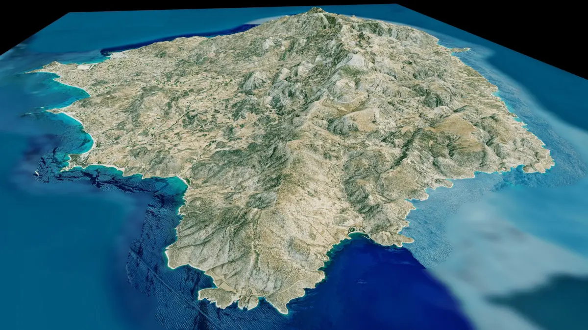 naxos island 3d model terrain. 3d model island of naxos with its landscape of mountains, beaches and forests.