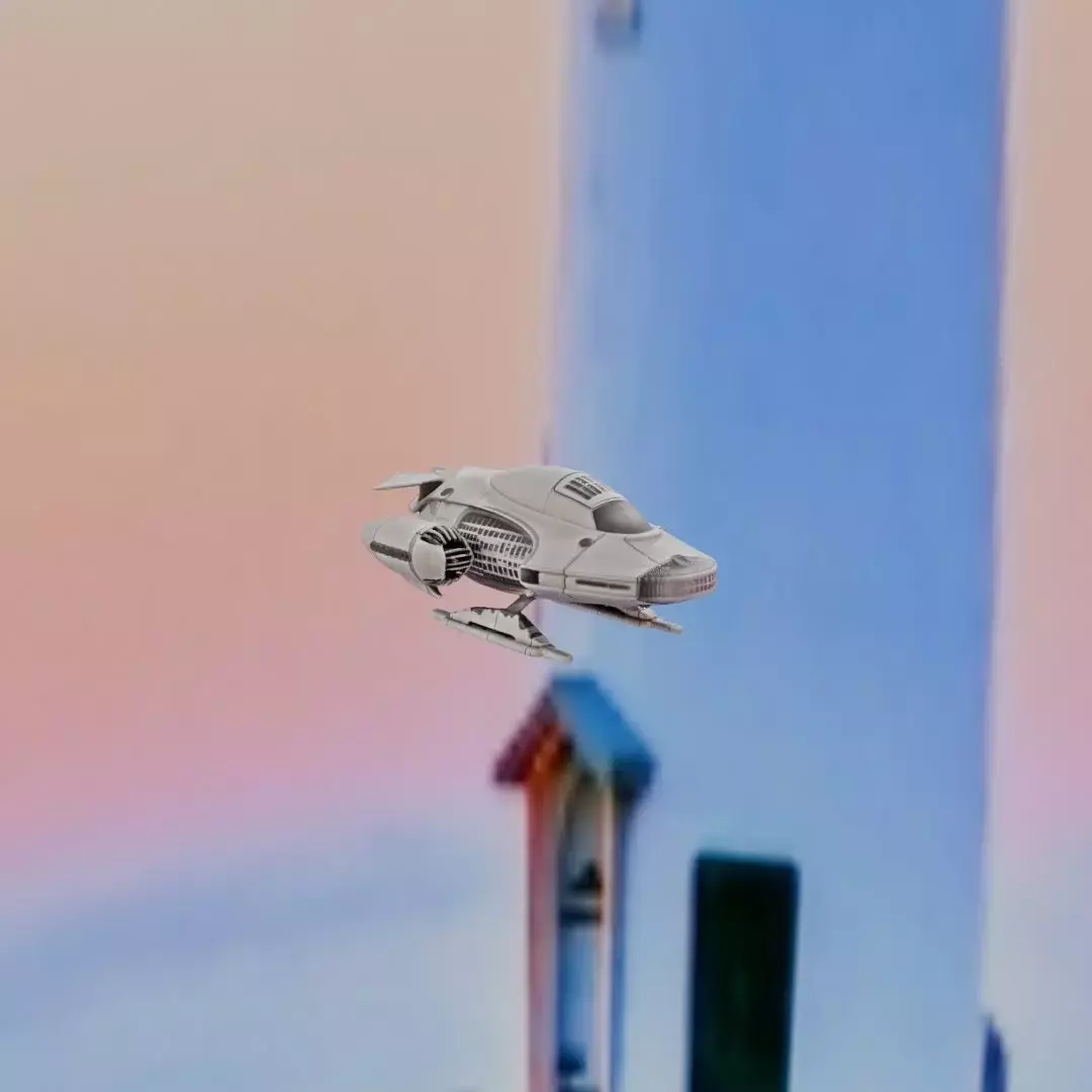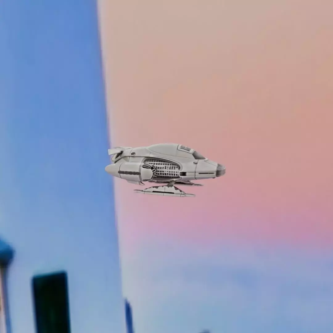 Spec sheet vibe: compact hoverbike miniature, engineered for printing rather than mechanical accuracy. Overall length is short, with a thick central body and integrated skids that act as both landing gear and a stable print base. The surfaces are intentionally readable: large panel zones, rounded seams, and shallow vent dimples that won’t disappear at 0.2 mm layers. For visual interest, the model includes non-repeating embossed stripes and randomized panel grooves so every angle catches light differently. There are no fragile antennae, needle wings, or tiny exposed “pipes”—just bold, chunky forms that survive handling. This makes an excellent desk collectible, a sci-fi diorama prop, or a “paint me” hobby piece. Print without worrying about tight tolerances; the design is decorative and forgiving, with support-friendly angles and solid thickness throughout.