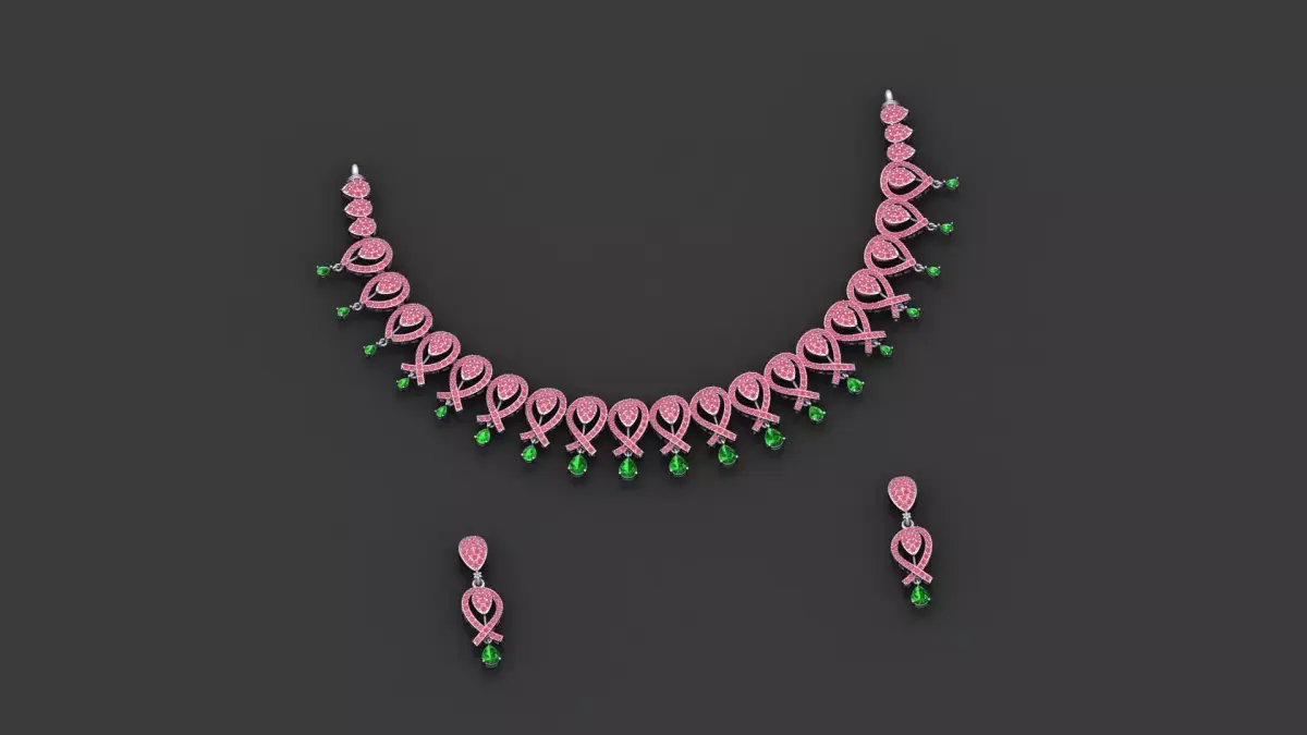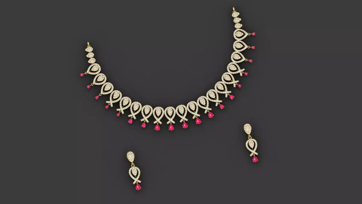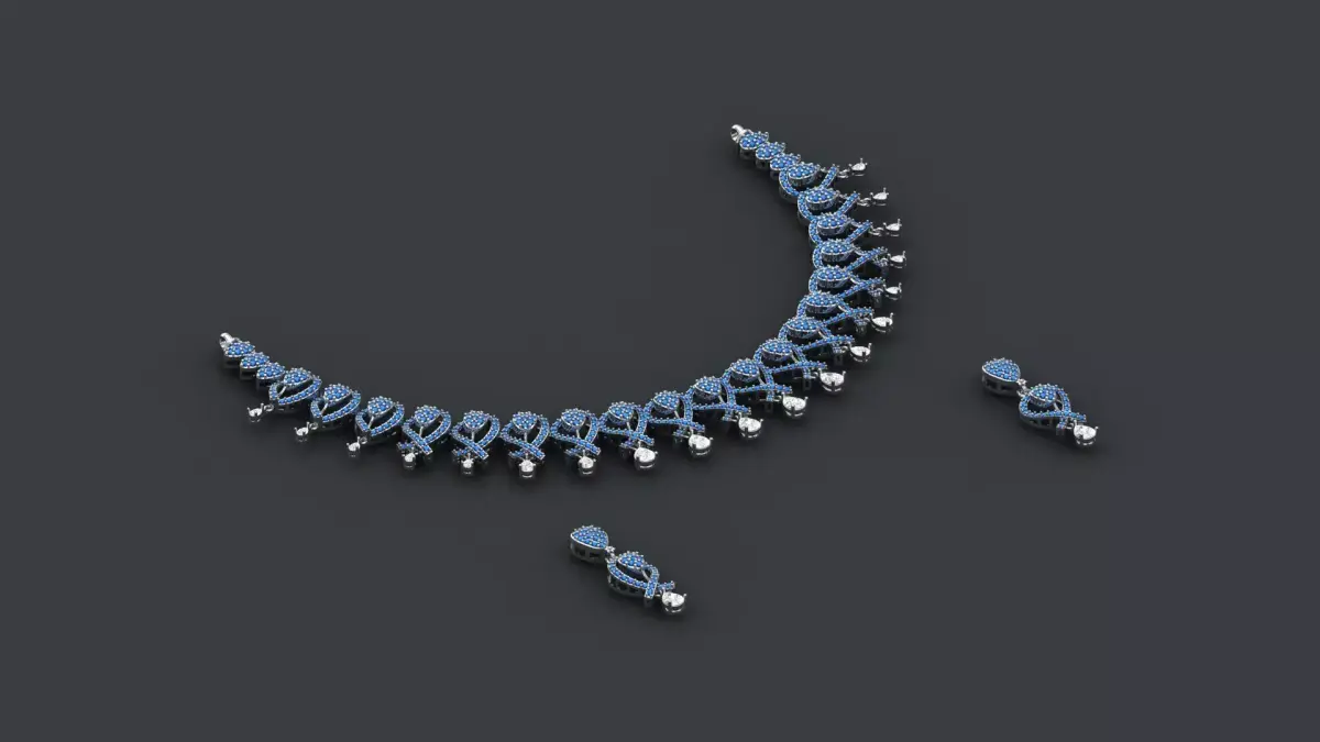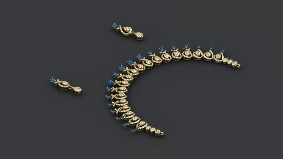 This is a jewelry gold and silver necklace and earring set. It is very light weight work. I made these works myself. I am a jewelry 3D CAD Designer. This work is fully prepared for CAM and other processes.