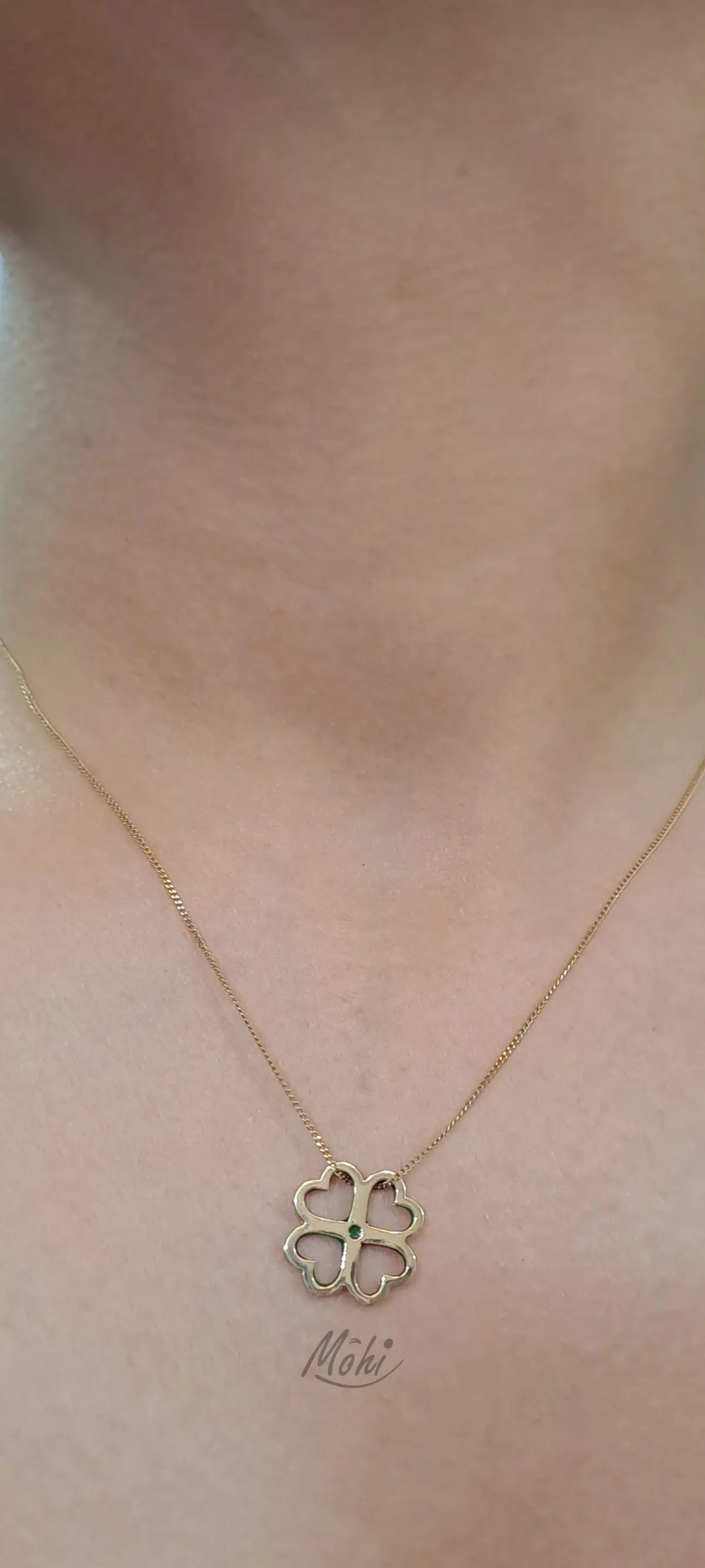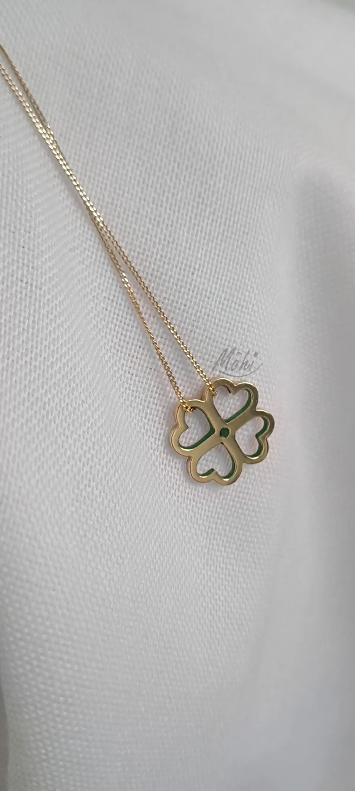 Necklace Clover.The four-leaf clover is the result of abnormal changes in the three-leaf clover. The three-leaf clover was used by Saint Patrick as a symbol of the Christian Trinity. According to tradition, finding a four-leaf clover is a sign of good luck, especially if it is found by chance. Some believe that each leaf represents something: the first leaf stands for faith, the second for hope, the third for love, and the fourth for luck.