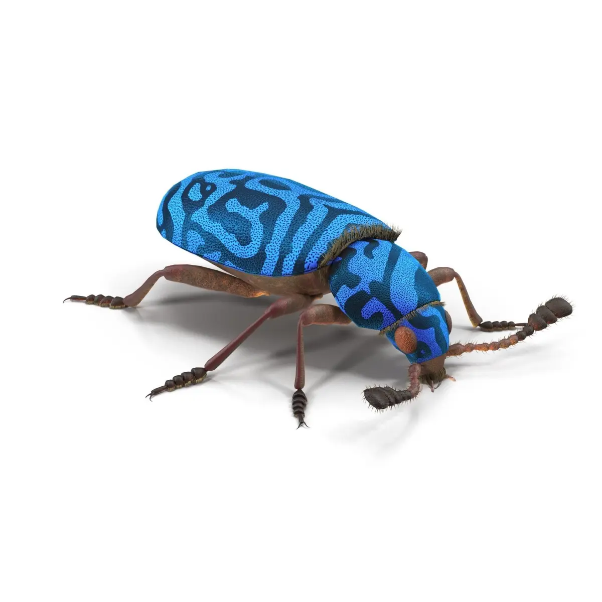 Photorealistic highly detailed 3D model of Necrobia rufipes Beetle. 3d model is equipped with bones that allows you to animate it, fur is made via a plug VrayFur. (.max format only). All textures included. Final images rendered with vray.The scene also included a standard material (Scaneline).