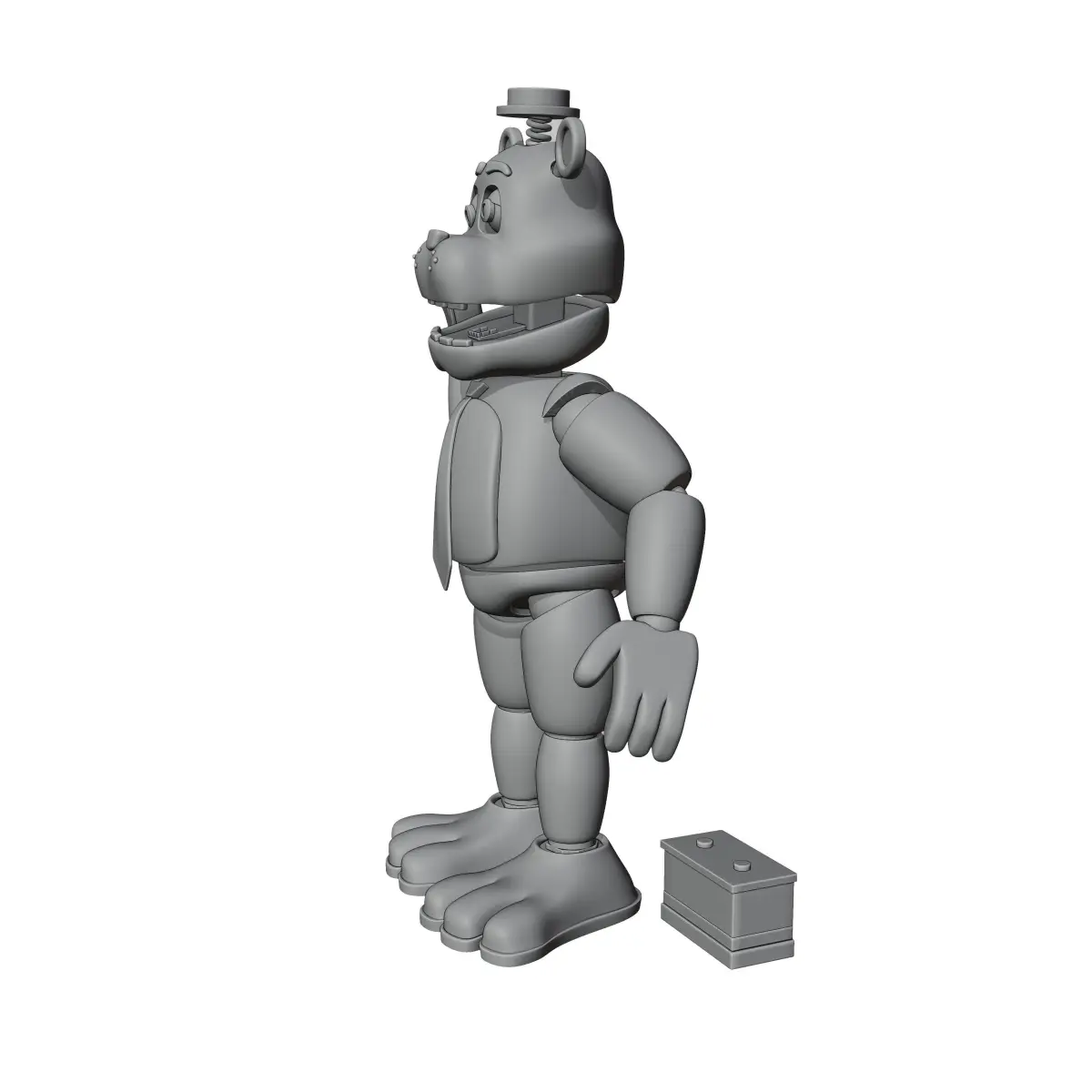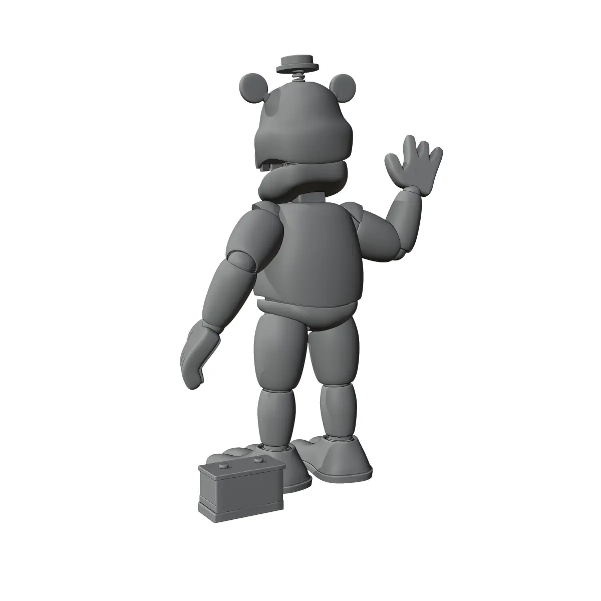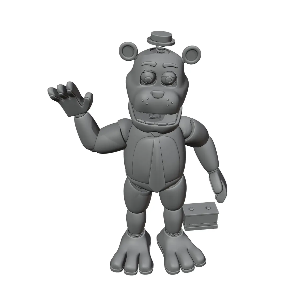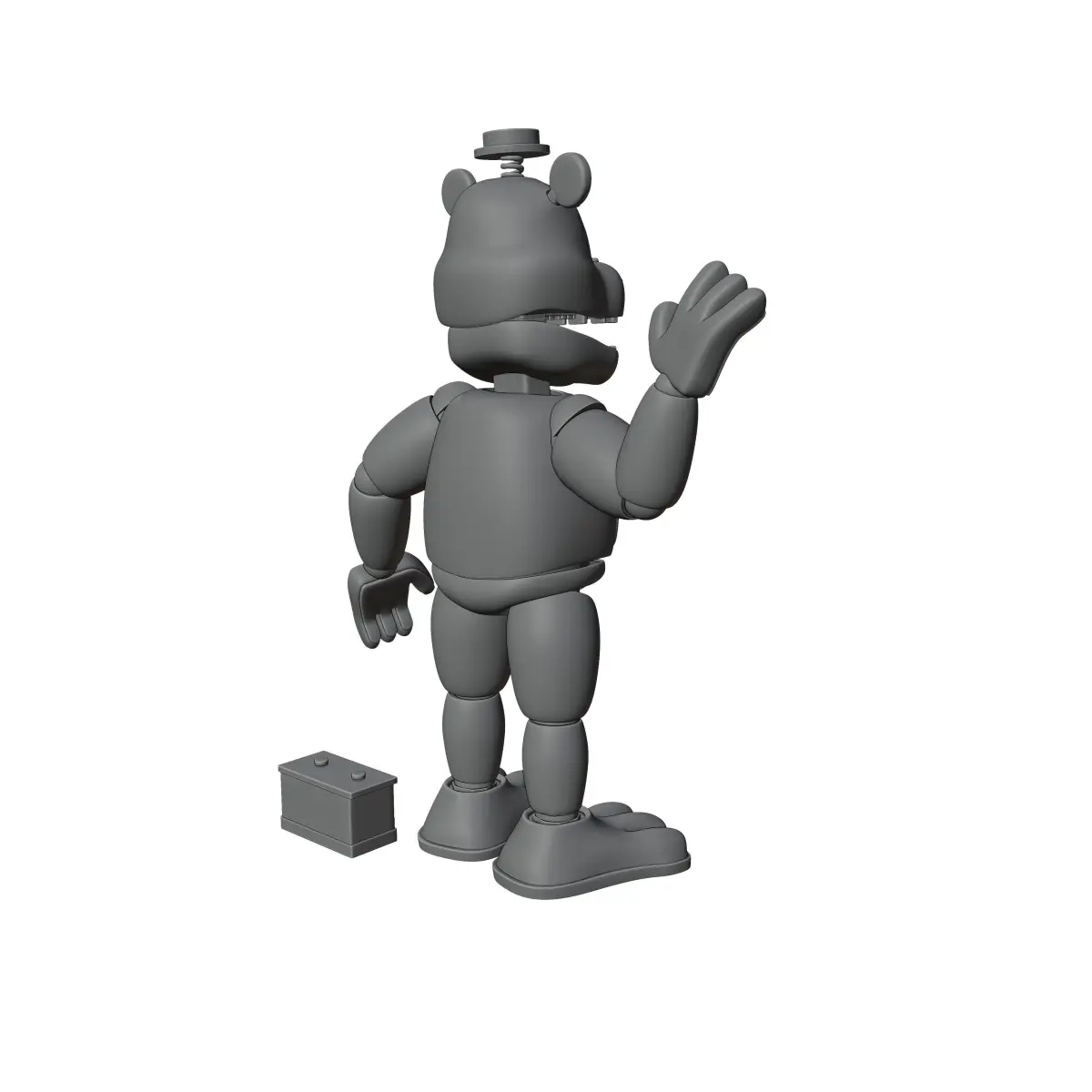 Nedd Bear is a light brown animatronic bear with tan accents around his muzzle, eye sockets, palms, under both feet, and belly. He resembles the designs of the original animatronics from the first game, specifically Freddy Fazbear. He has droopy green eyes, a red tie with diagonal white stripes, and a red flat hat attached to his head by a spring. If one looks carefully, he has a visible endoskeleton mouth similar to the ones seen in the first game.
