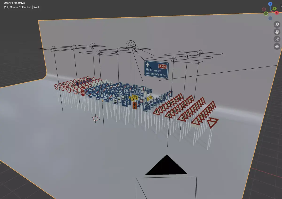 Set of Dutch traffic signs. Linked models, categorized, textured and with lighting studio setup.