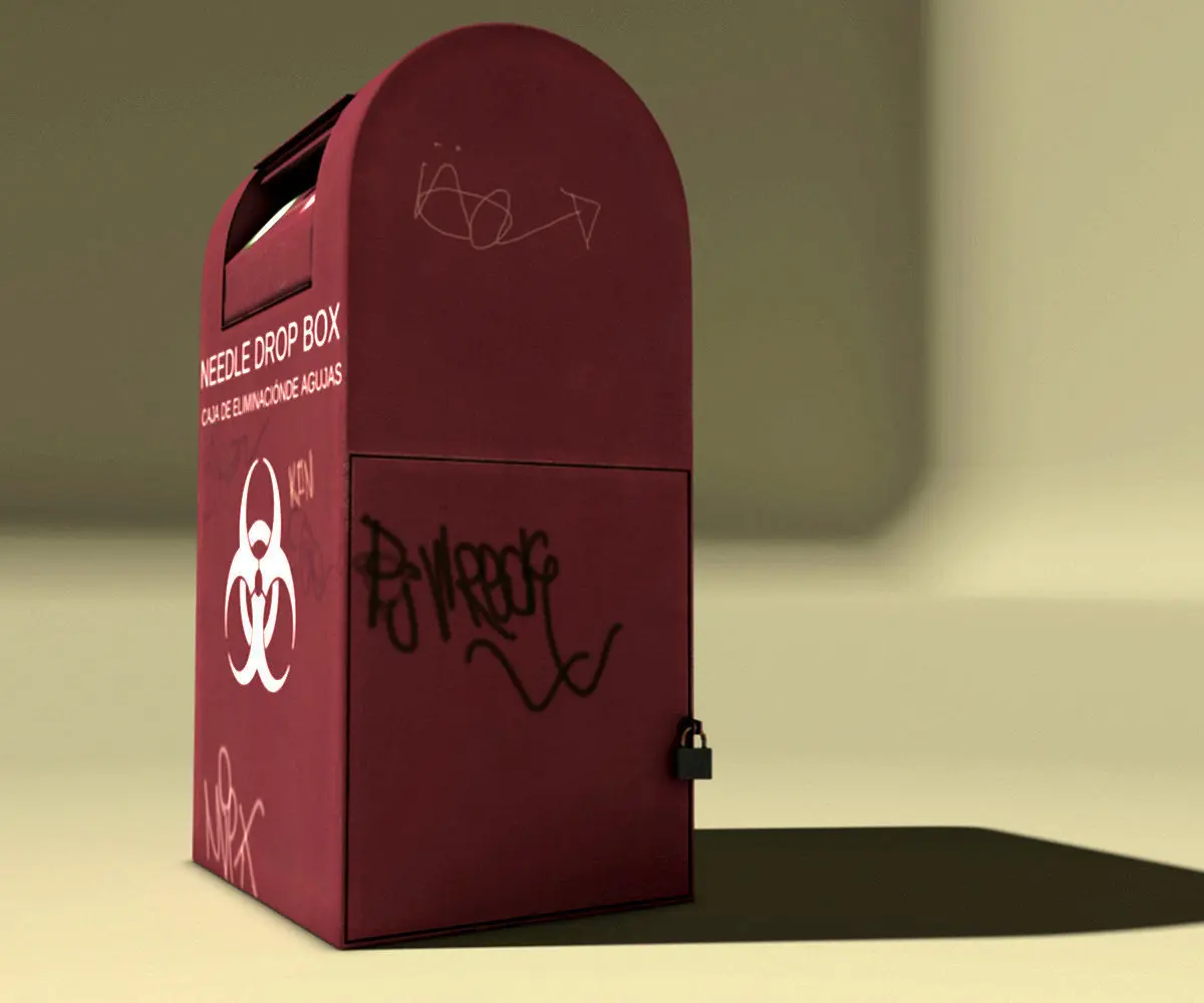 Needle drop box. High poly version.For the low poly version go to:https://www.cgtrader.com/3d-models/exterior/street/needle-drop-box