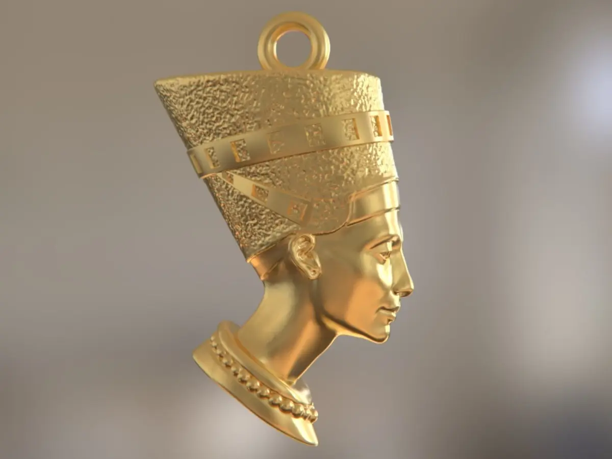 Nefertiti's bust as a pendant. The Model needs an extra bail so that the profile faces the front when worn.The model has been decimated.