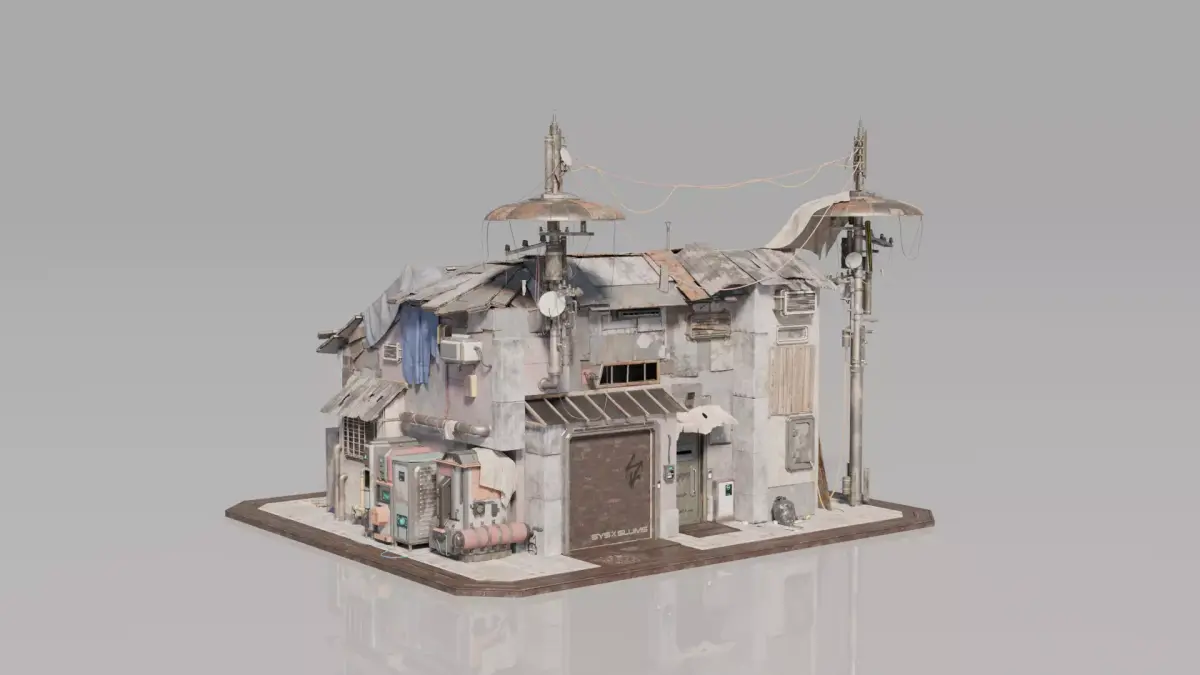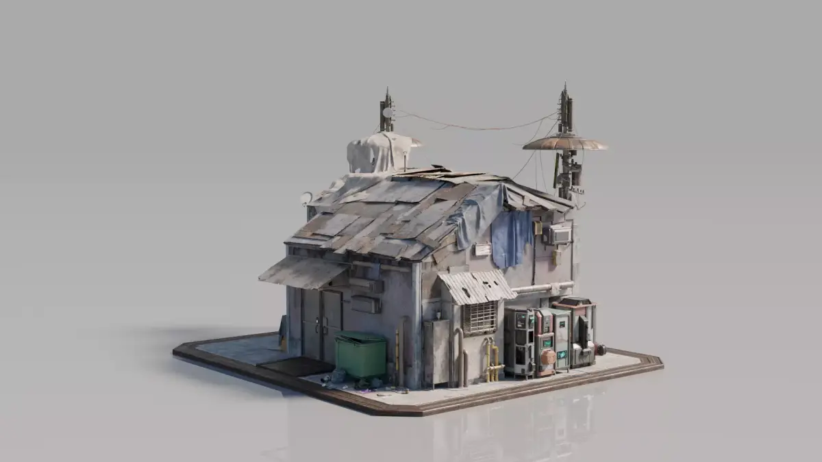 Explore this highly detailed 3D model of a uniquely designed house featuring unconventional modular structures and urban-inspired elements. Crafted with meticulous attention to architectural details and realistic textures, this model adds an authentic, gritty atmosphere to your scenes. Perfect for game environments, architectural visualization, or creative projects, it comes in Blend, OBJ, FBX, and STL formats, with 4K PBR textures for highly realistic rendering. Each component is optimized for easy animation and seamless integration into your projects.