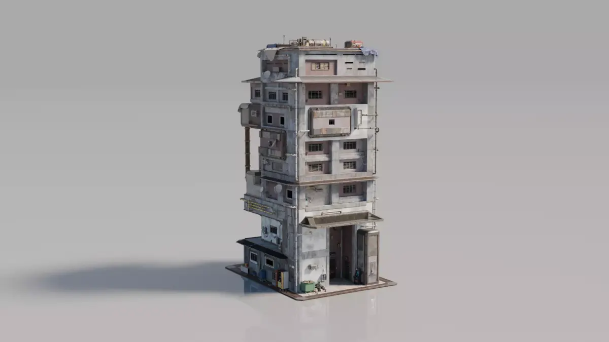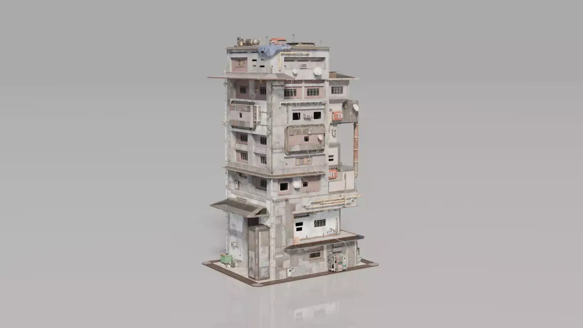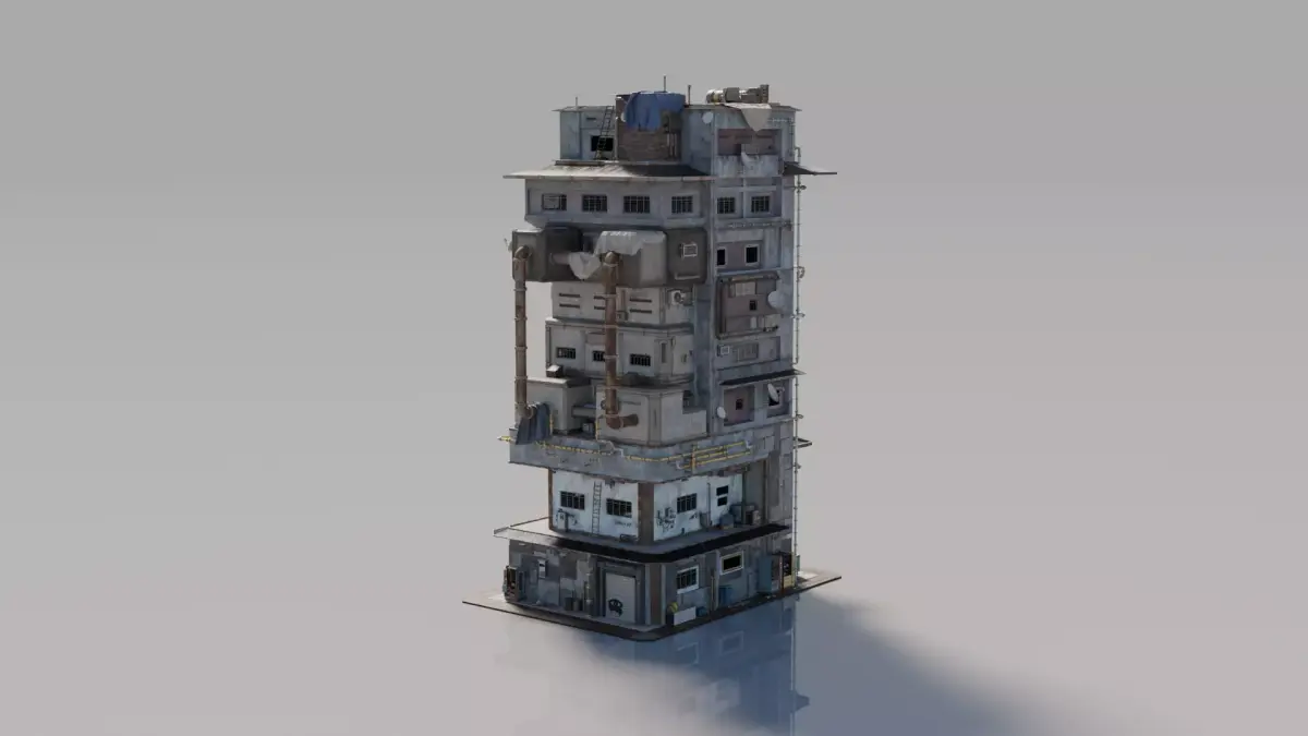 Explore this highly detailed 3D model of a uniquely designed house featuring unconventional modular structures and urban-inspired elements. Crafted with meticulous attention to architectural details and realistic textures, this model adds an authentic, gritty atmosphere to your scenes. Perfect for game environments, architectural visualization, or creative projects, it comes in Blend, OBJ, FBX, and STL formats, with 4K PBR textures for highly realistic rendering. Each component is optimized for easy animation and seamless integration into your projects.
