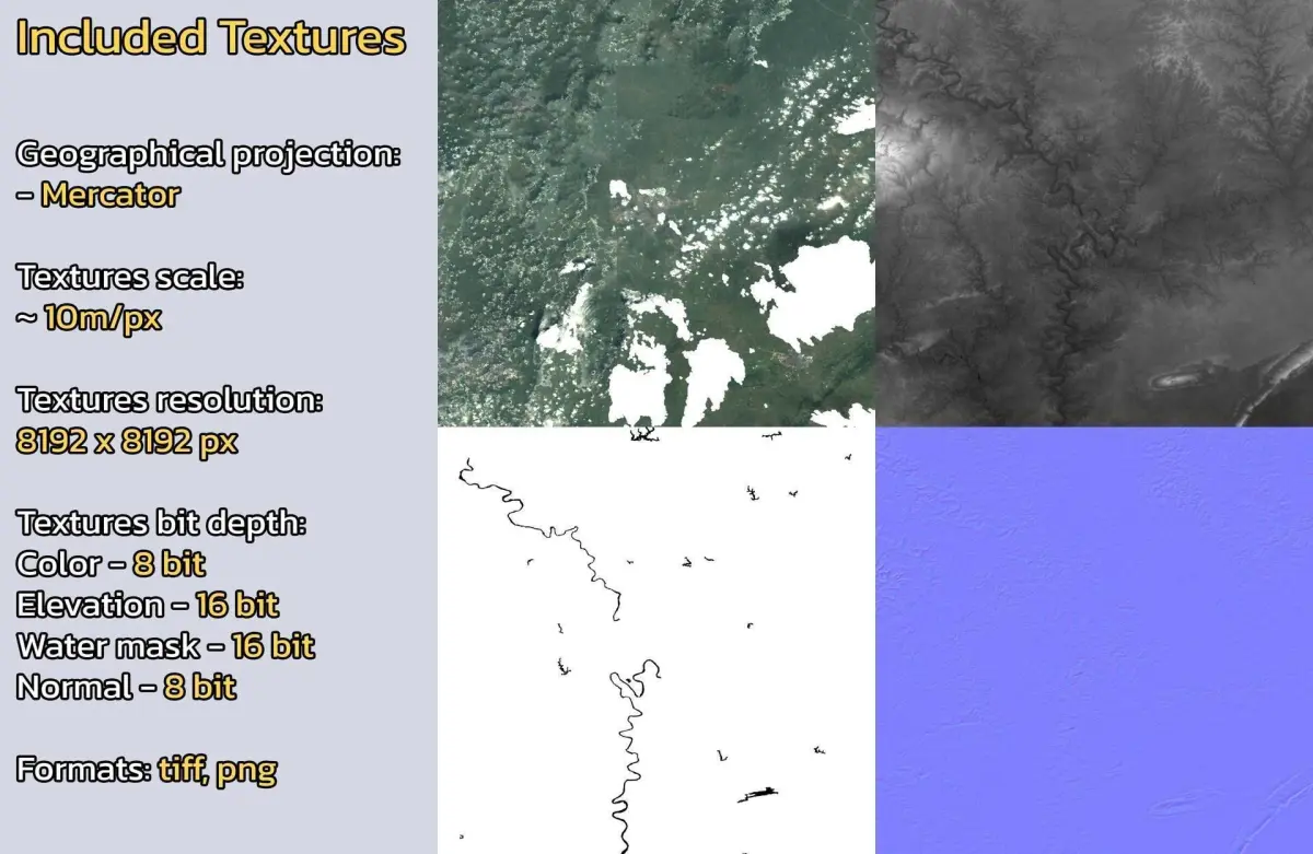 Warning: minor clouds/artifacts may be present on the diffuse color satellite texture due to the nature of the dataset. Check product images.
