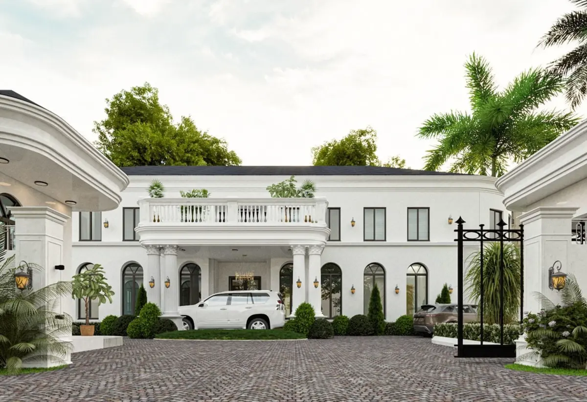 a modern neo classical 3d model building with white color scheme