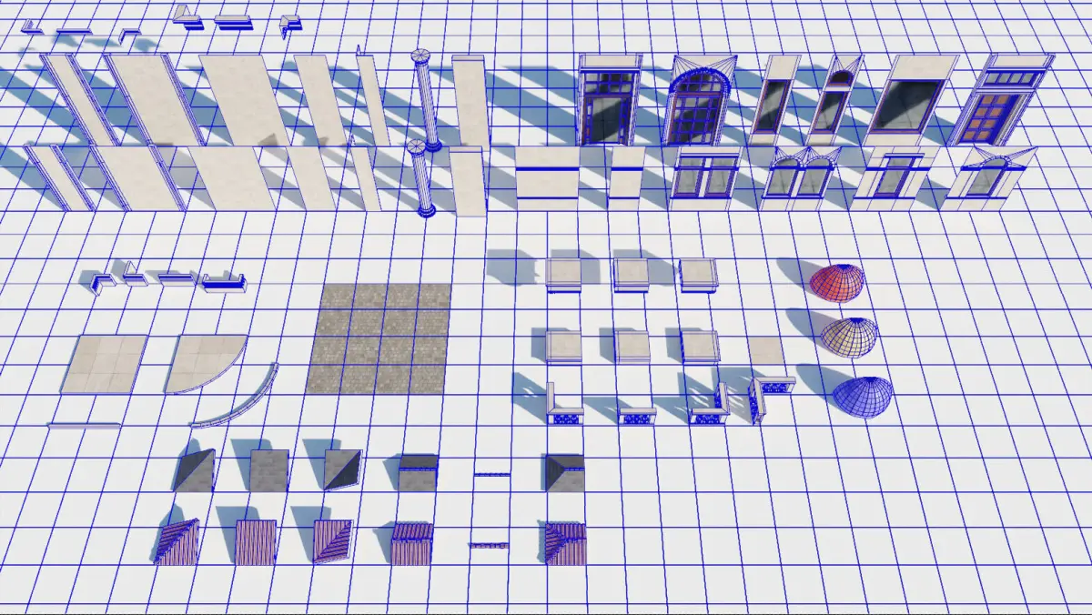 Neo-Classical Modular Building Kit, designed for game development and architectural visualisations. Features 65 modules. Models are created in a metric grid for precise scaling and real-world accuracy. The modules are not dense both in poly count and texture size. Some materials have trim sheet textures for increased quality and efficiency.